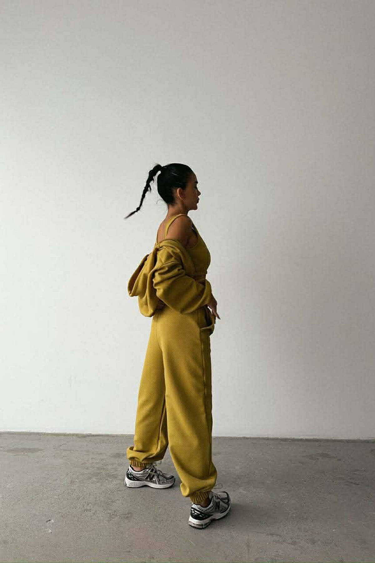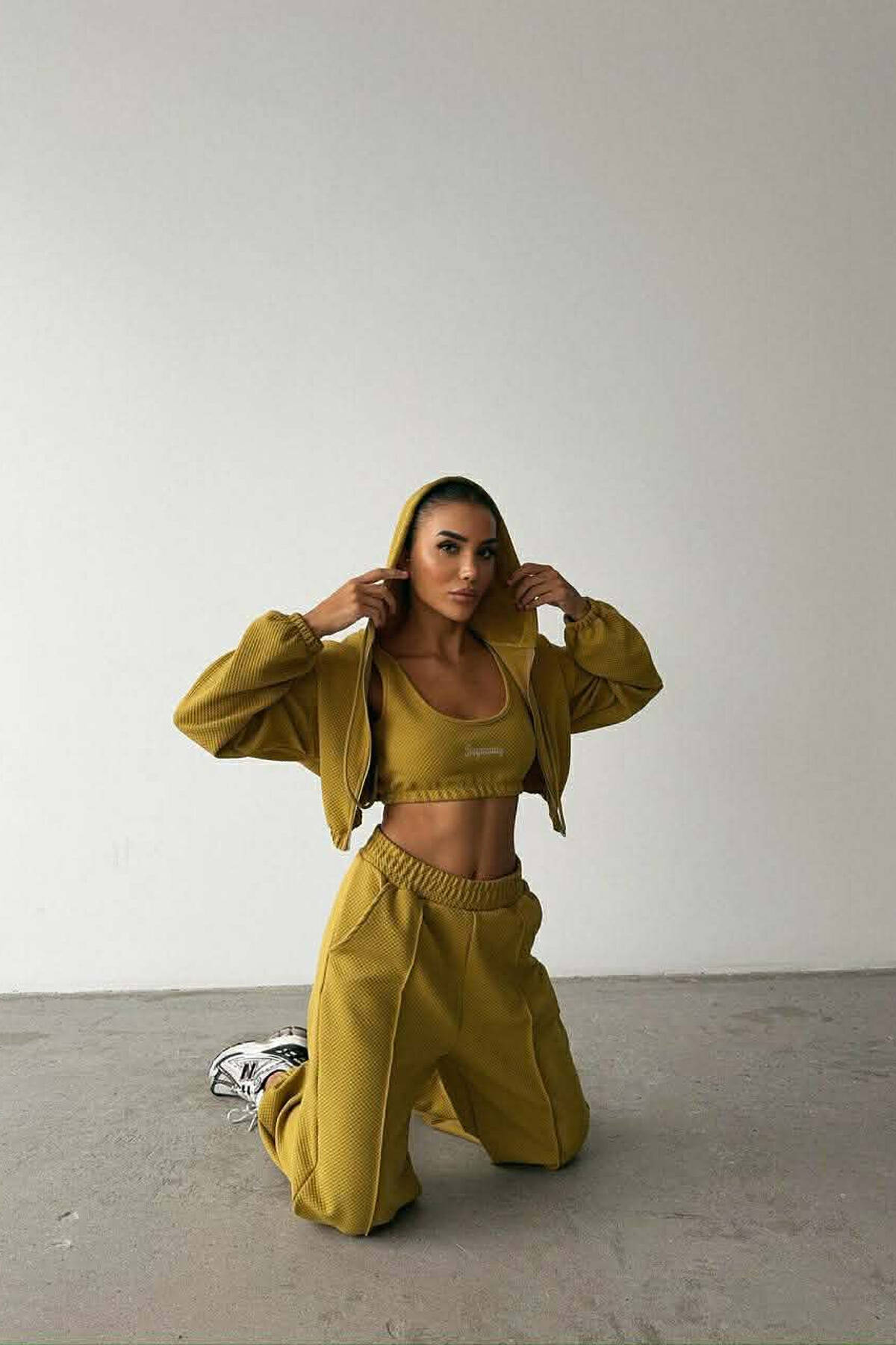 ONE COLOR KNITTED FABRIC JACKET+BRA+JOGGERS WOMEN SET LIGHT GREEN/JEZB