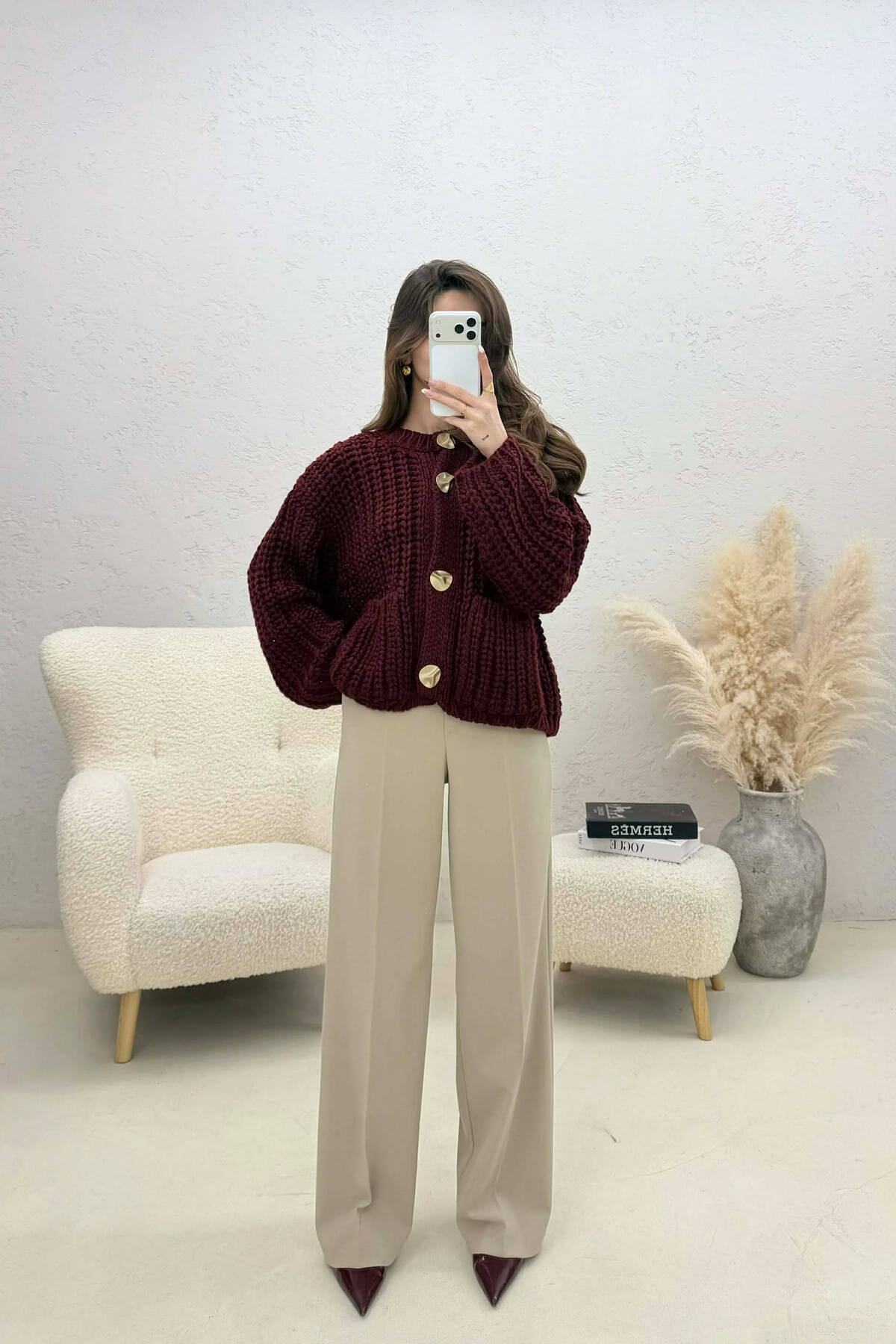 ONE COLOR GOLD BUTTONS WOMEN CARDIGAN BURGUNDY/VISHNJE