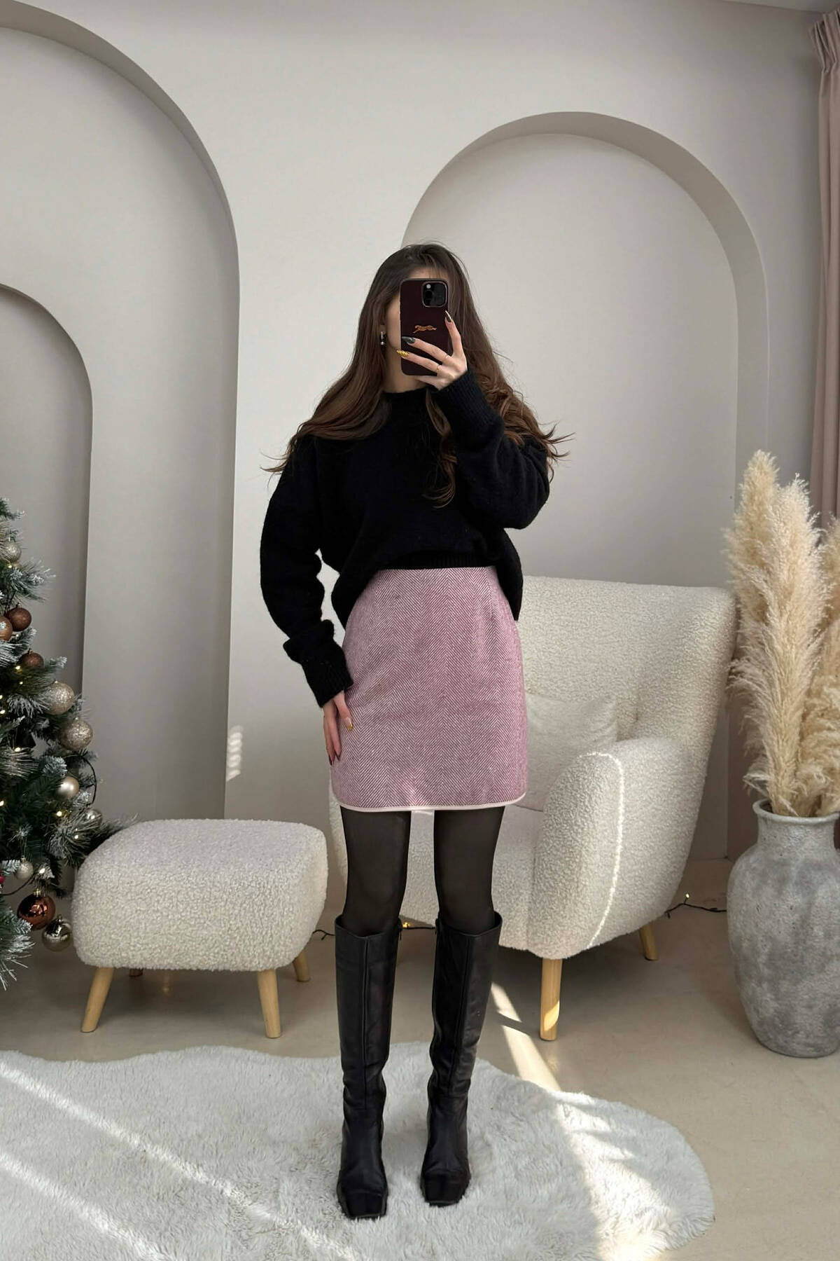 DENIM FRONT KNITTED DETAIL WOMEN SKIRT PINK/ROZE