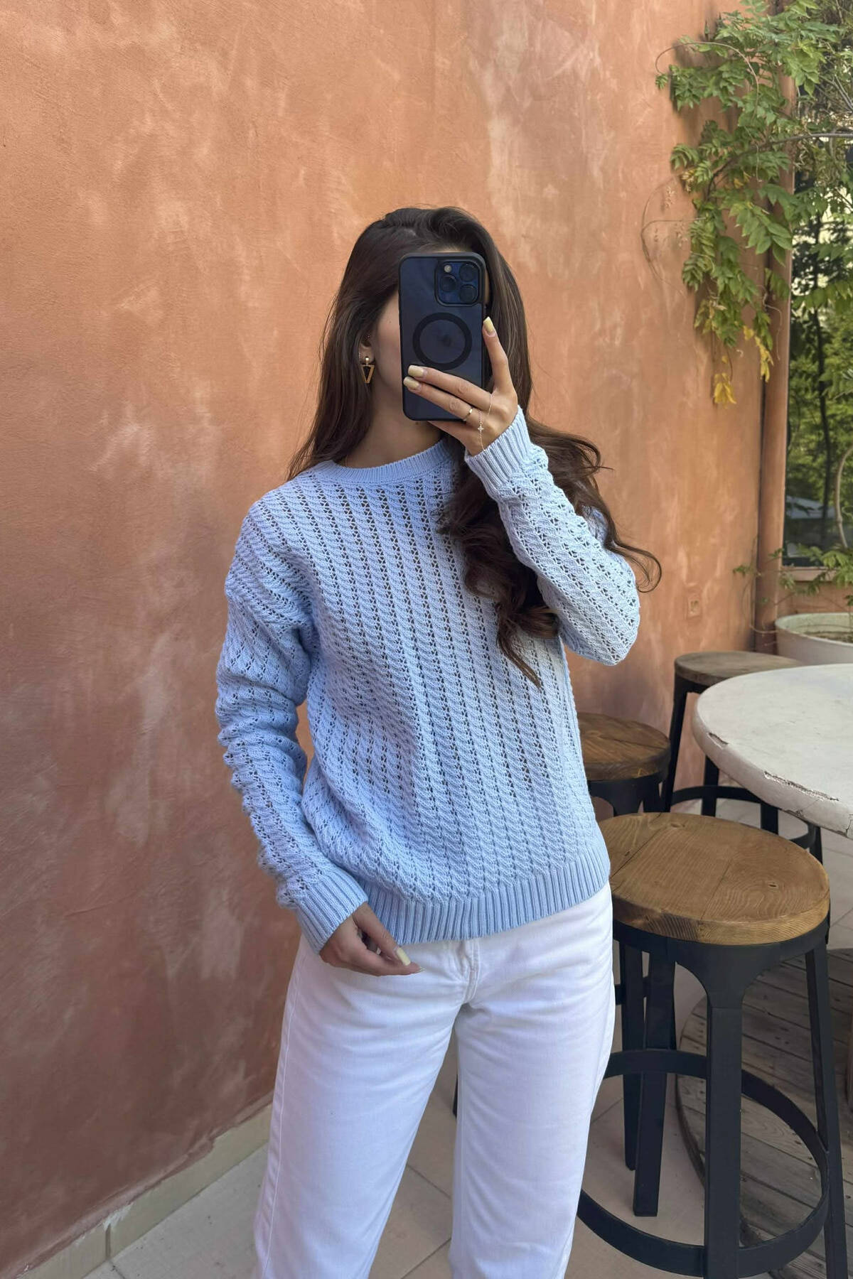 ONE COLOR KNITTED SIMPLE WOMEN SWEATER BABY BLUE/BLU BY