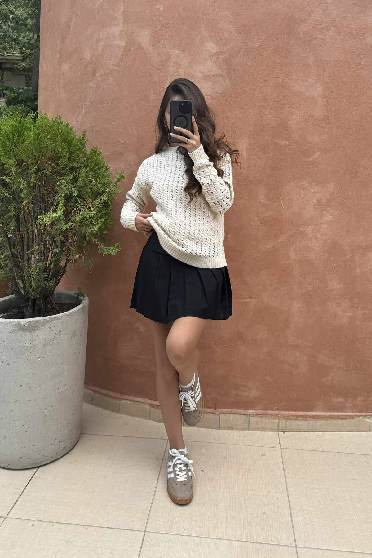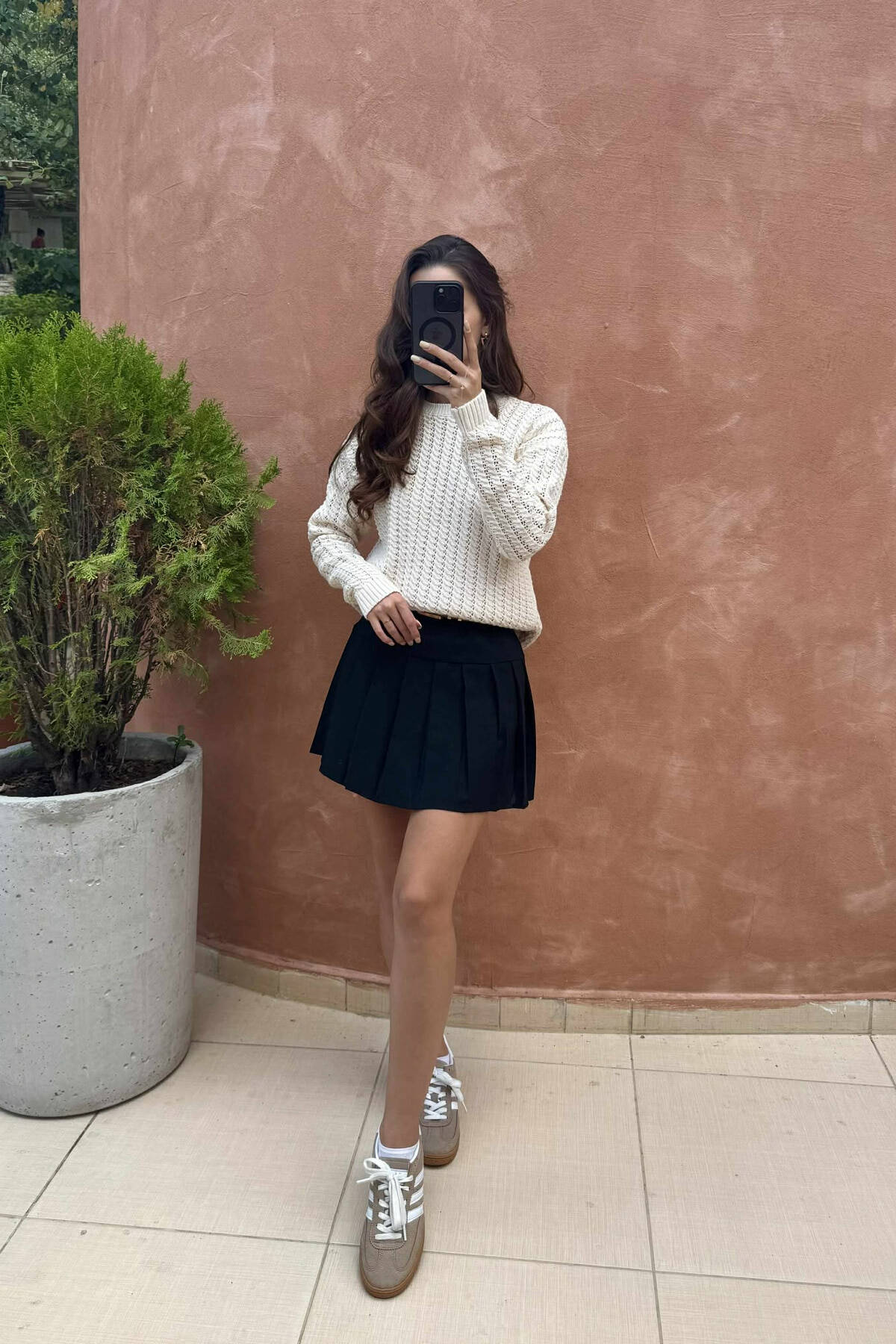 RHOMBUS DESIGN ROUND NECK WOMEN SWEATER BLACK/ E ZEZE