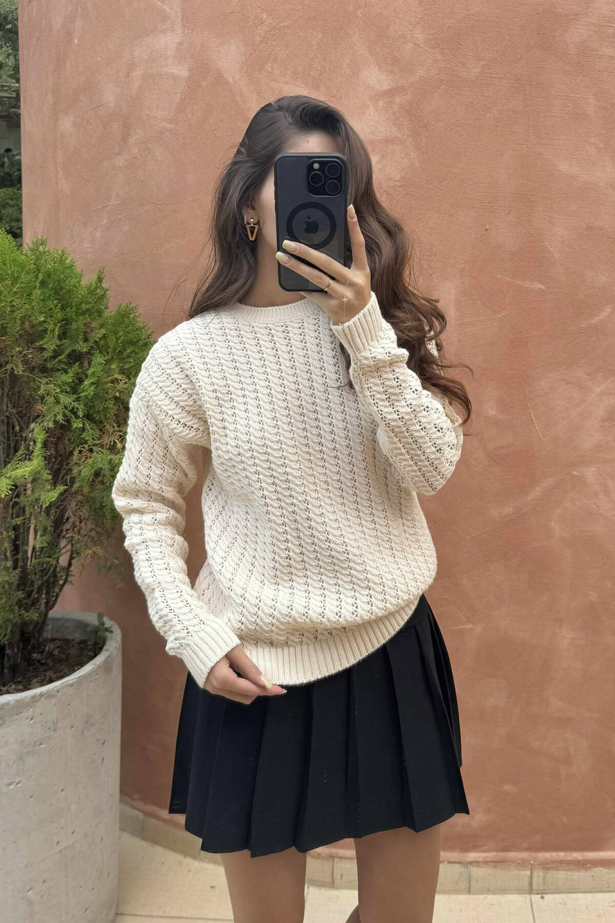 ONE COLOR KNITTED SIMPLE WOMEN SWEATER LIGHT BEIGE/BZHZB