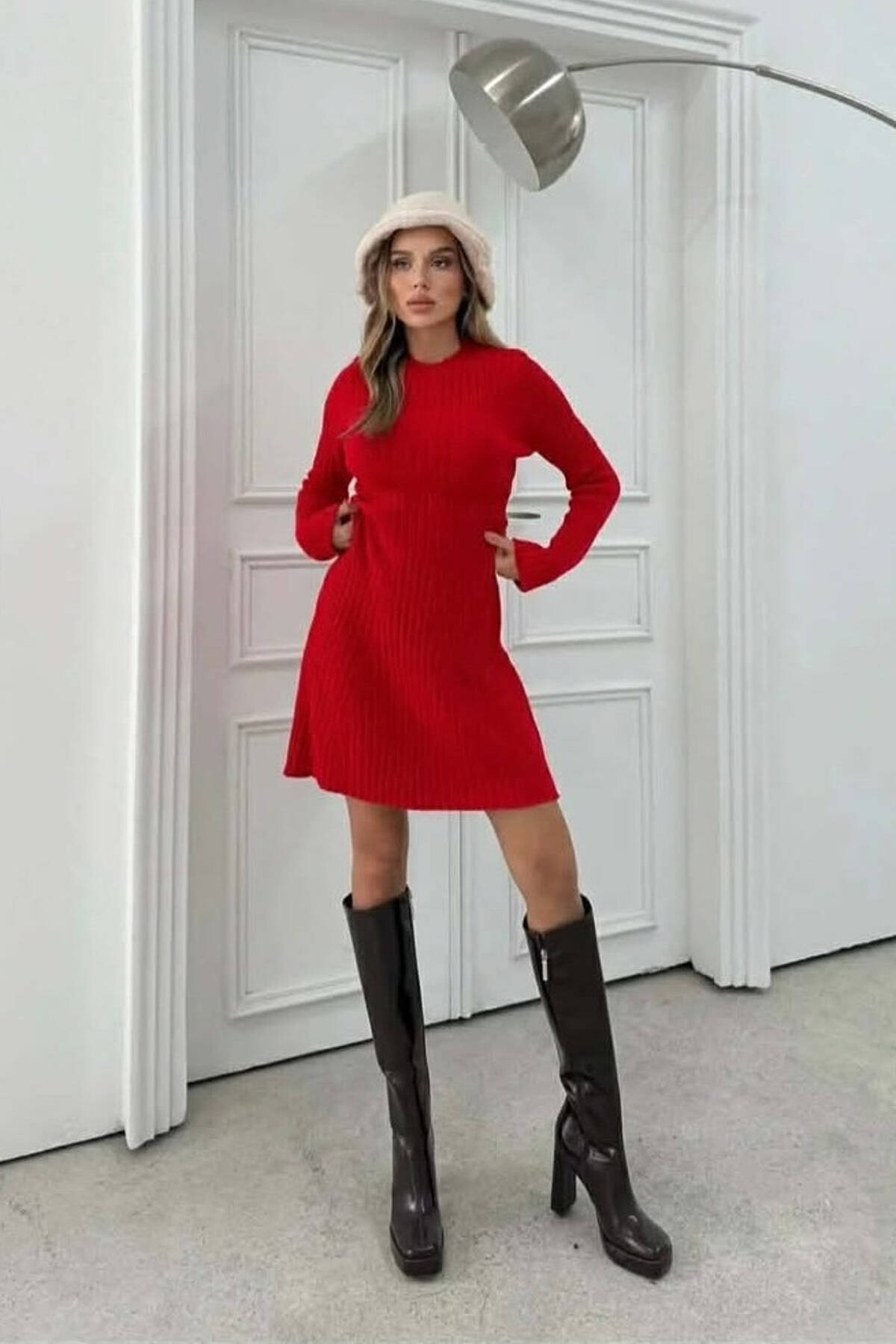ONE COLOR KNITTED WOMAN DRESS RED/E KUQE