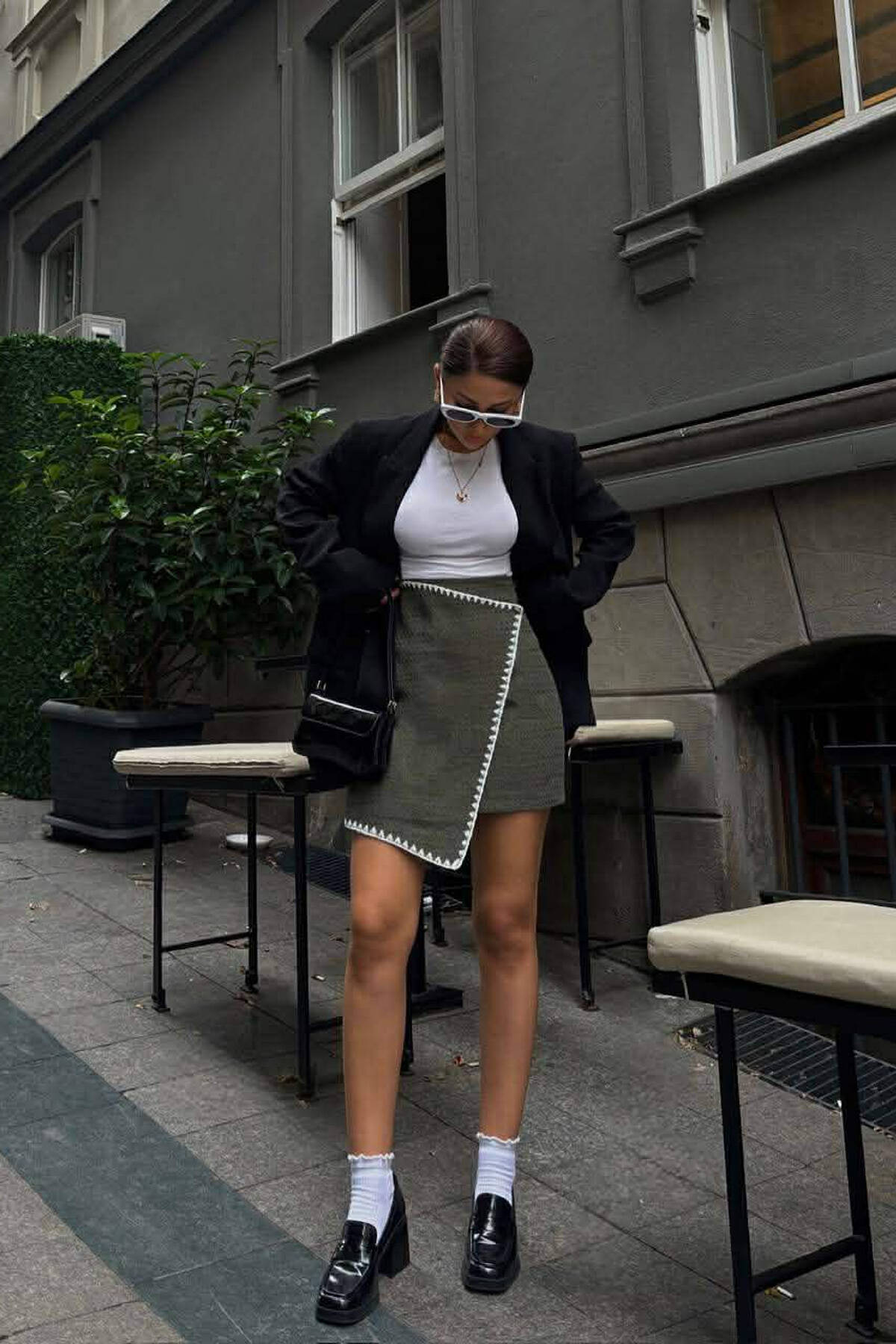 DENIM FRONT KNITTED DETAIL WOMEN SKIRT BLACK/ E ZEZE