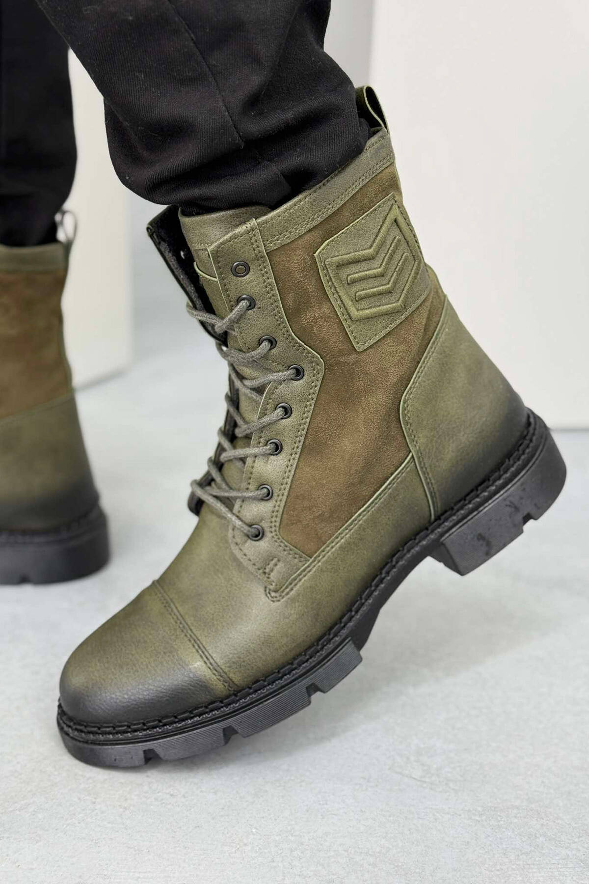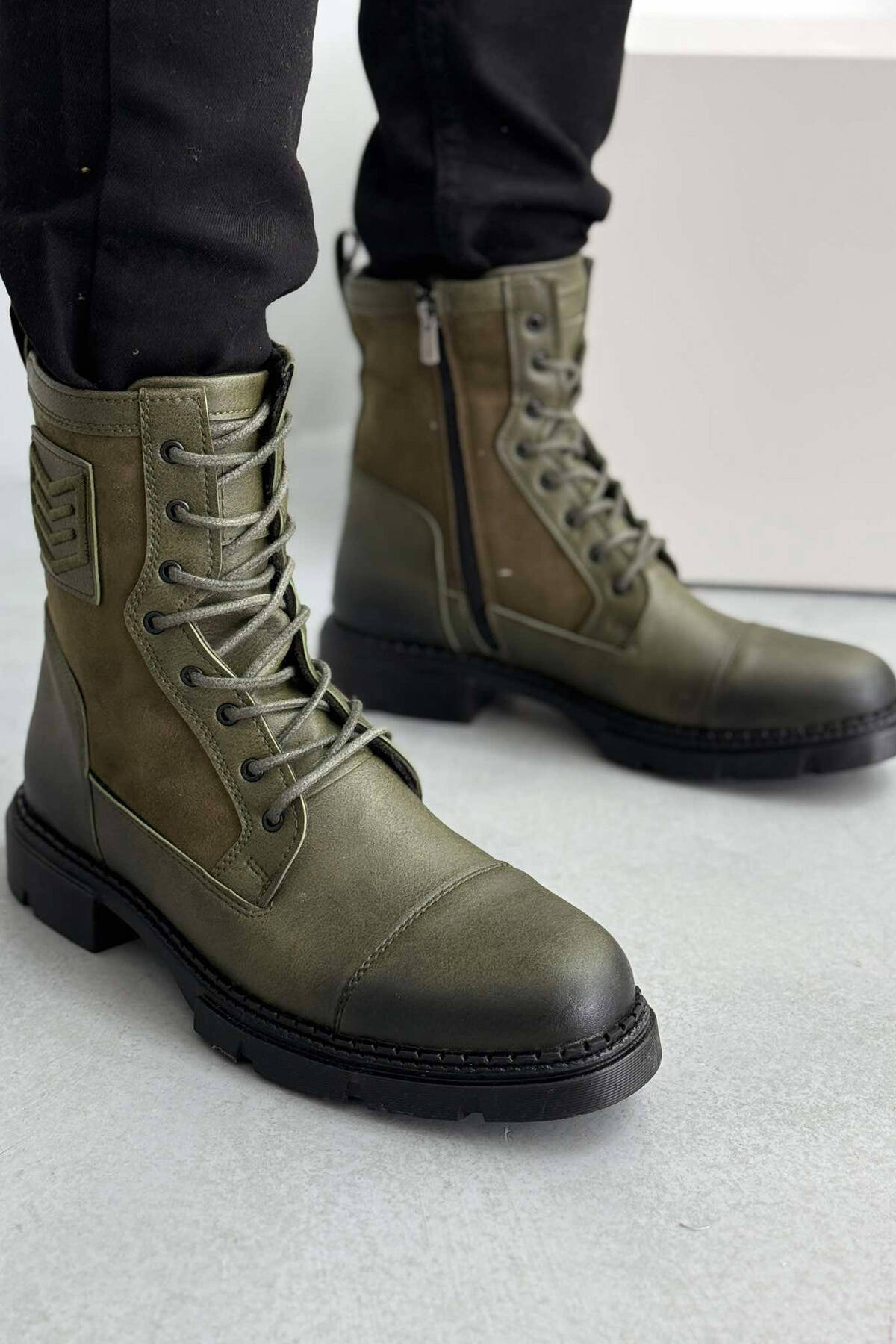 ONE COLOR LACE-UP MEN ANKLE BOOTS GREEN/JESHILE