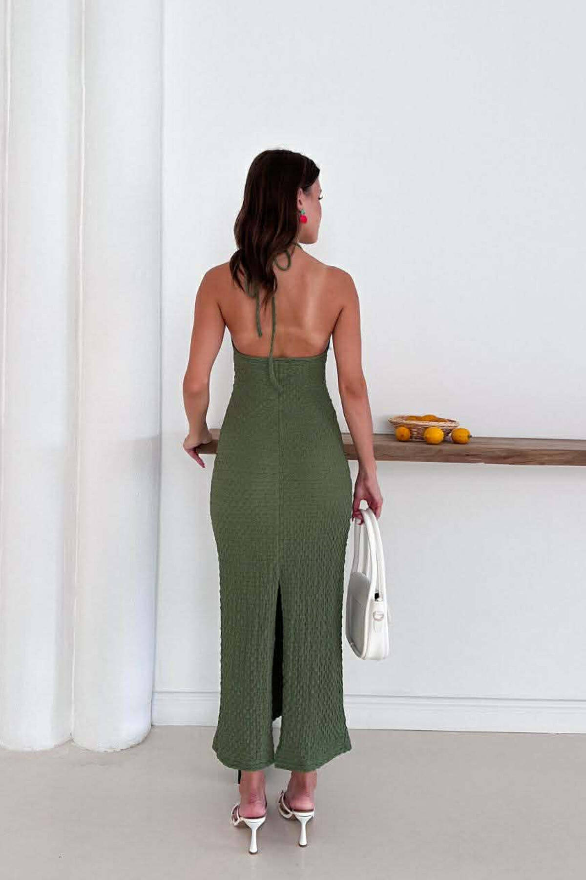 FUSTAN NJE NGJYRESH ME LIDHESE TEK PJESA E QAFES PER FEMRA NE NGJYRE JESHILE TE ZBARDHUR