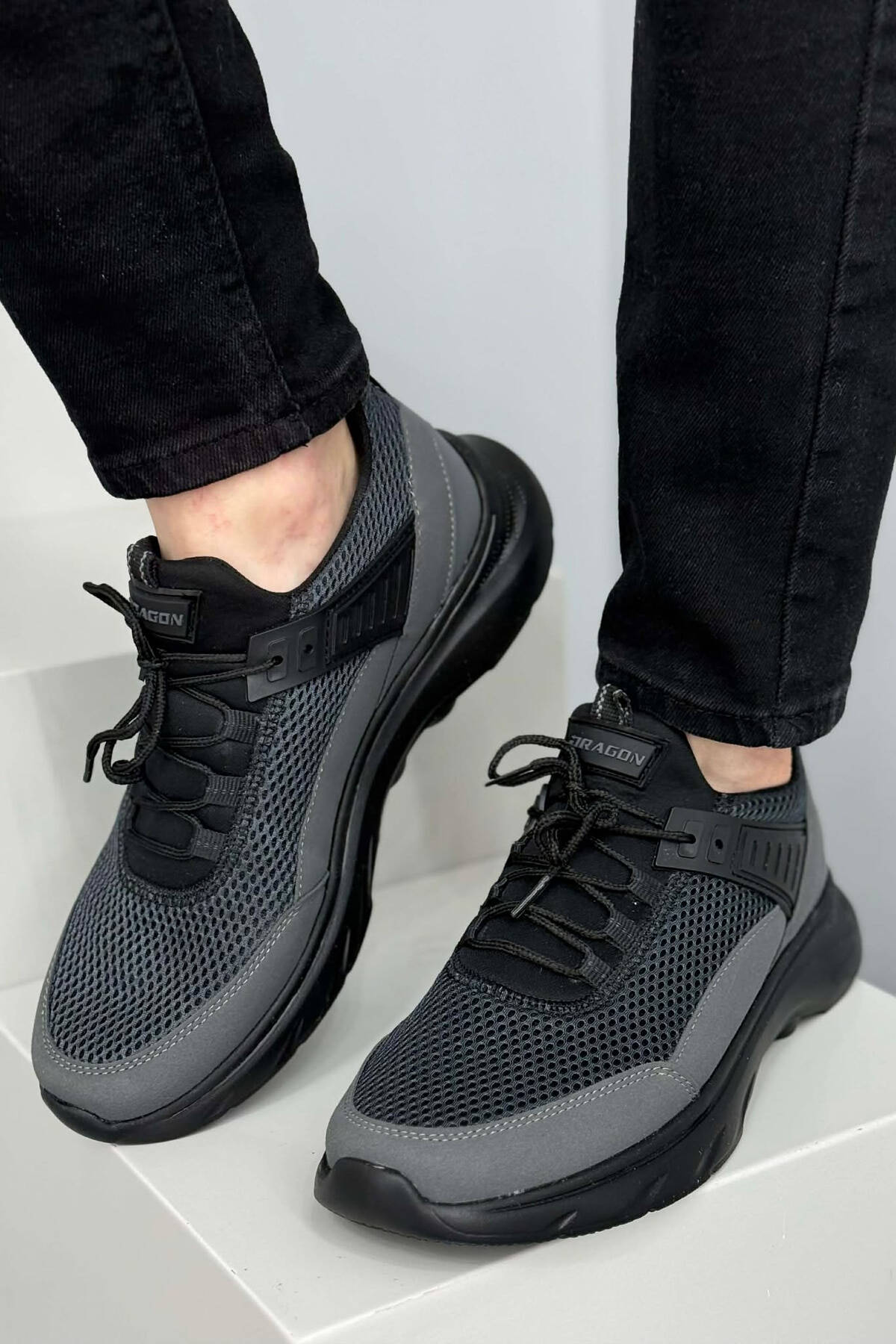 PLATFORM LACING SIMPLE MEN SNEAKERS BLACK-GREY/ZEGR