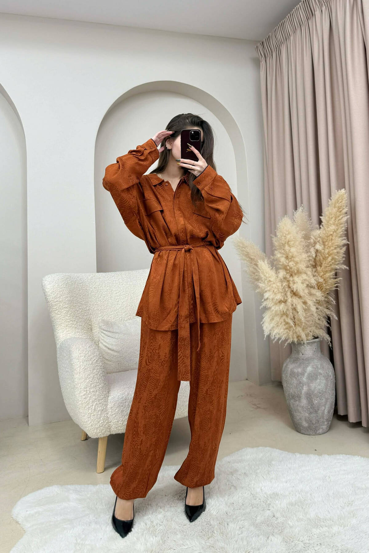 ONE COLOR LACING SHIRT+ TROUSERS WOMEN SET BRICK/TULLE