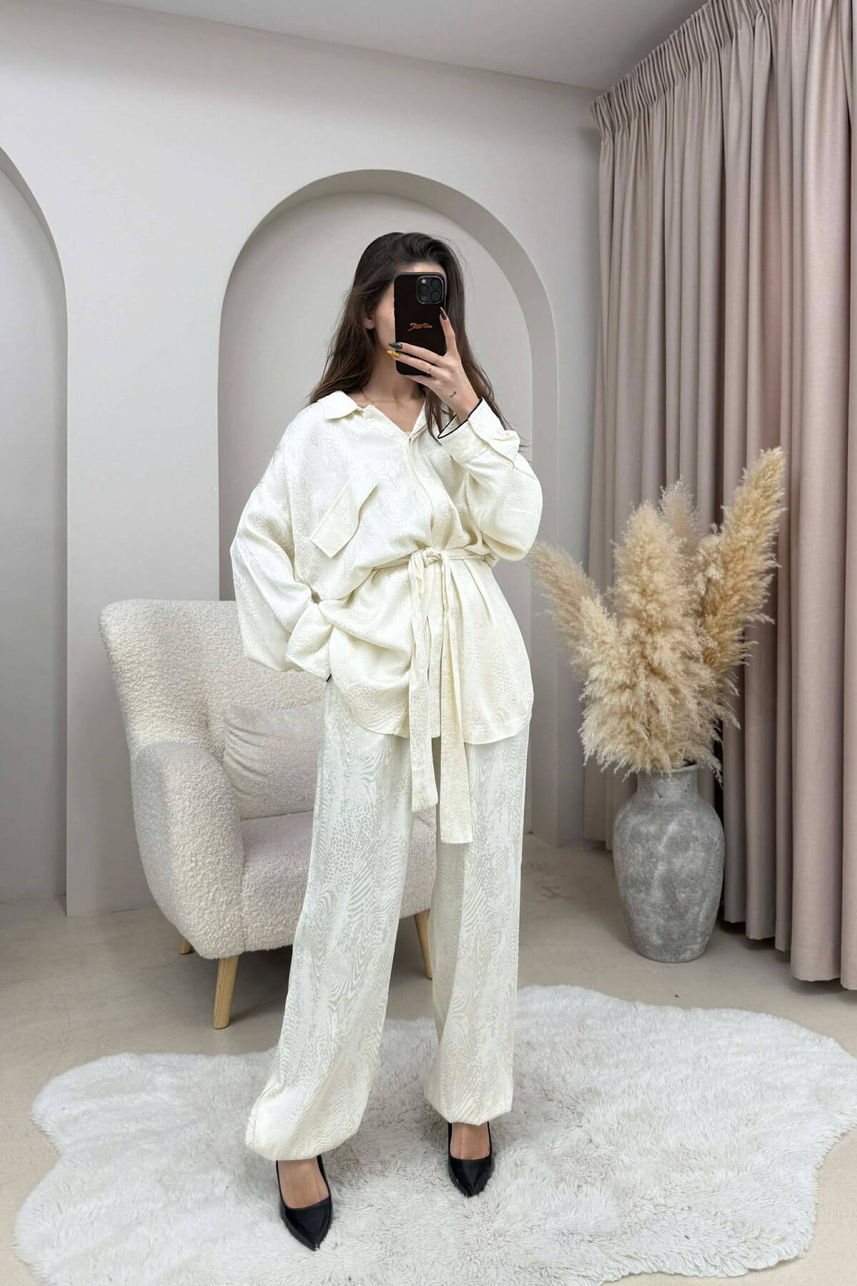 ONE COLOR LACING SHIRT+ TROUSERS WOMEN SET CREAM/KREM