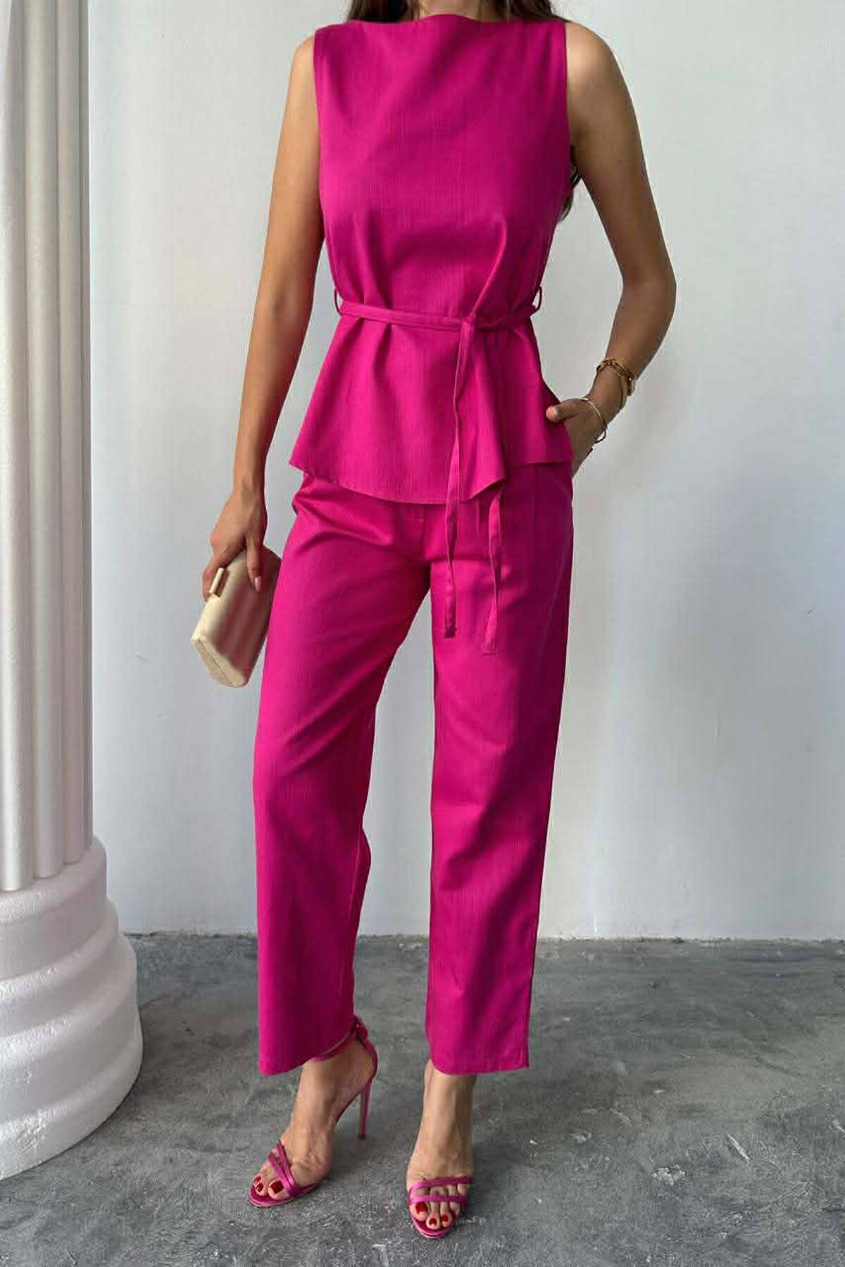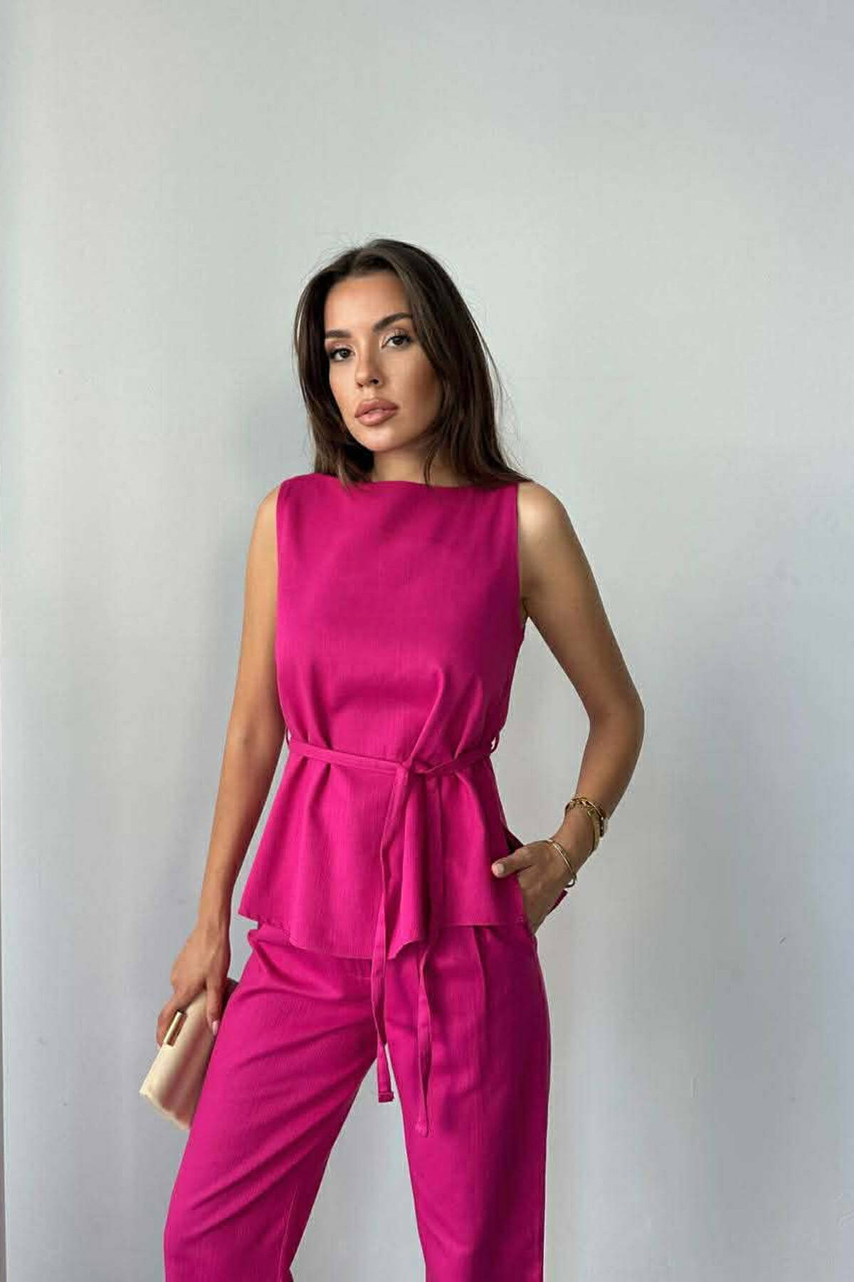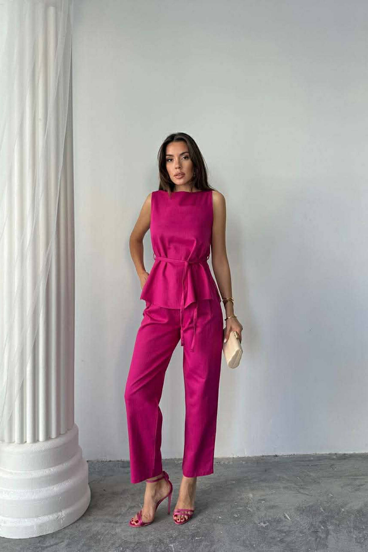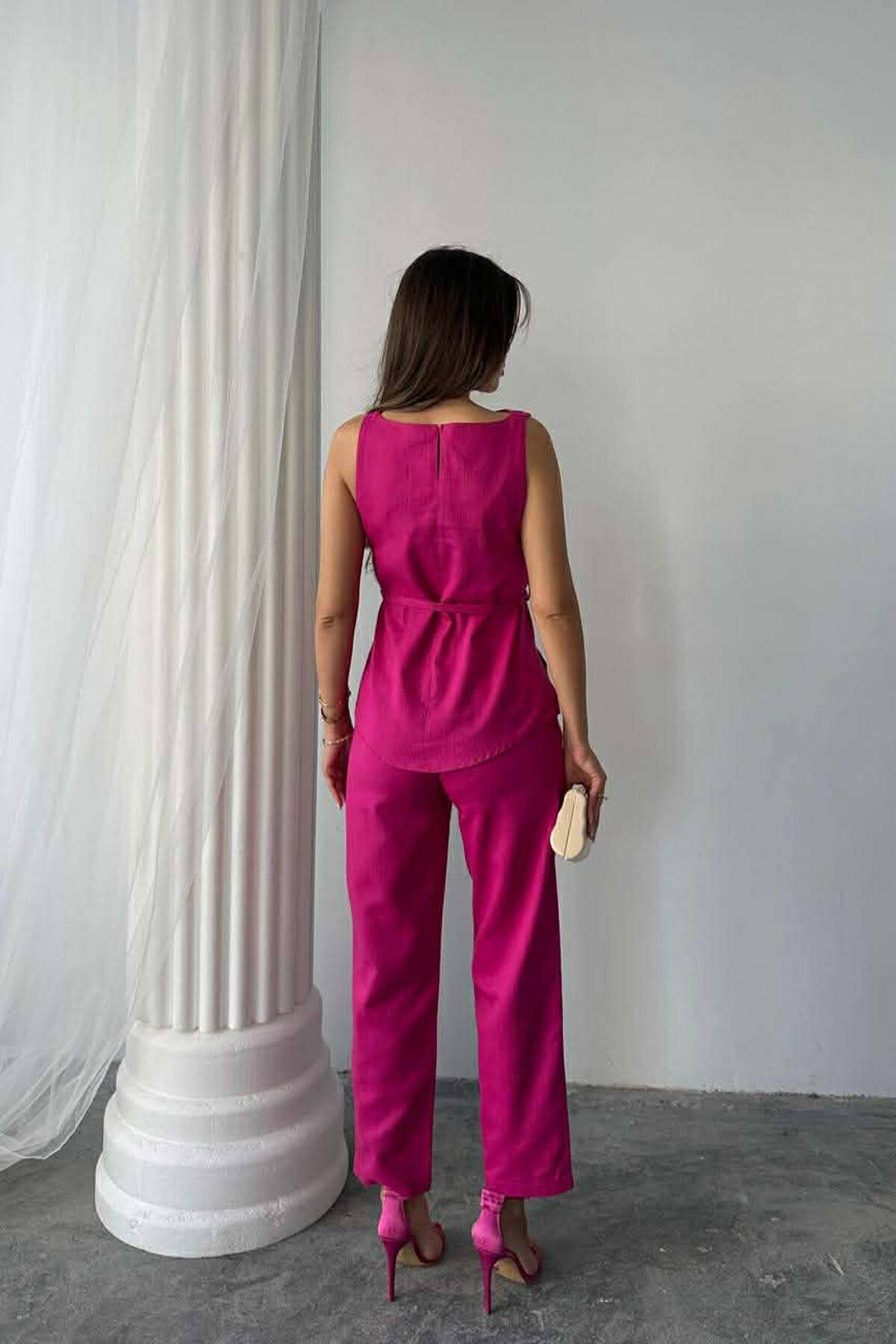 SET NJE NGJYRESH JELEK ME LIDHESE + PANTALLONA PER FEMRA NE NGJYRE CIKLAMI