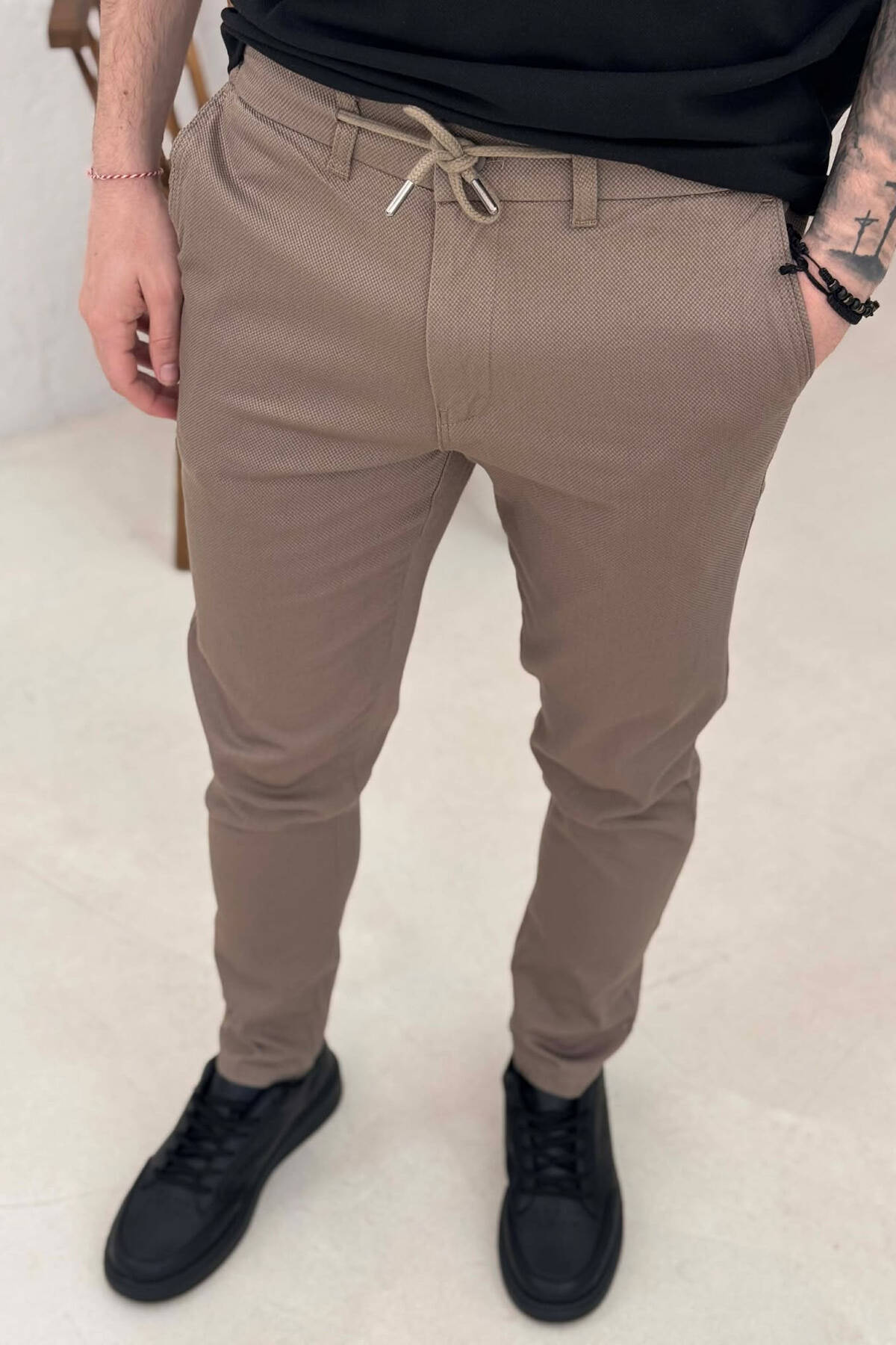 ONE COLOR SEMI ELASTIC WAIST MEN PANTS BEIGE/BEZHE