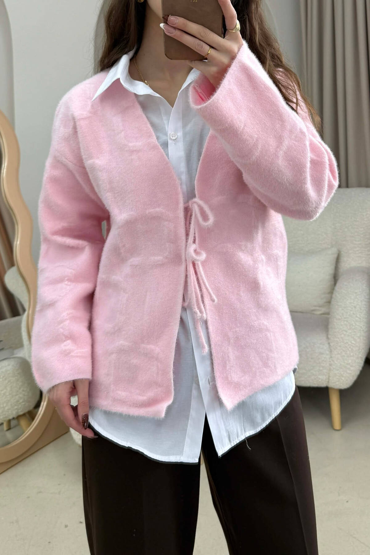 PULOVER ME LIDHESE PER FEMRA NE NGJYRE KAFE