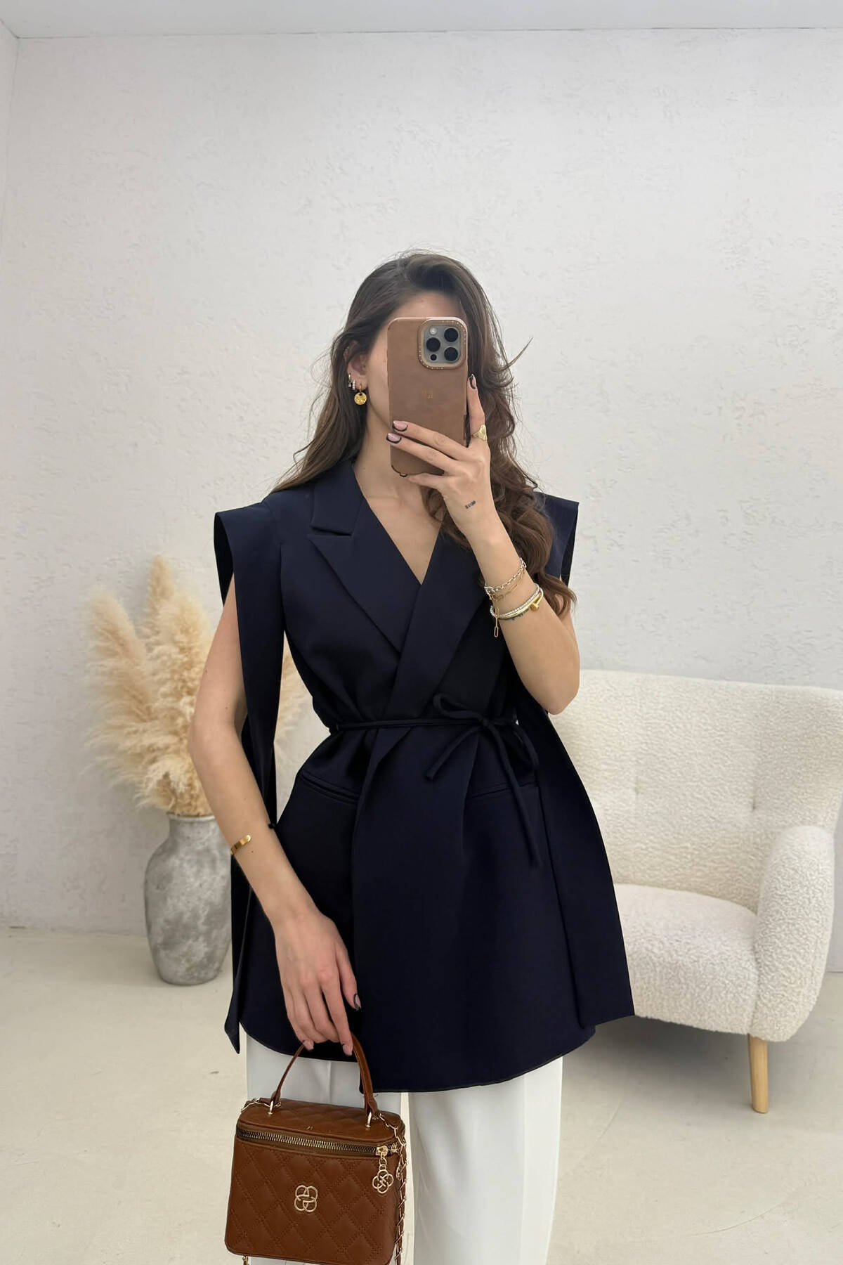 ONE COLOR LACING WOMEN VEST DARK BLUE/BEE