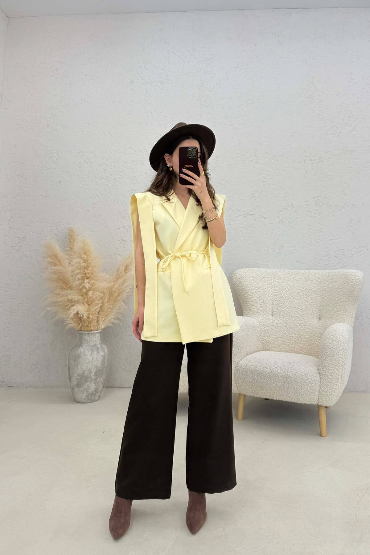 ONE COLOR LACING WOMEN VEST LEMON/ LIMON