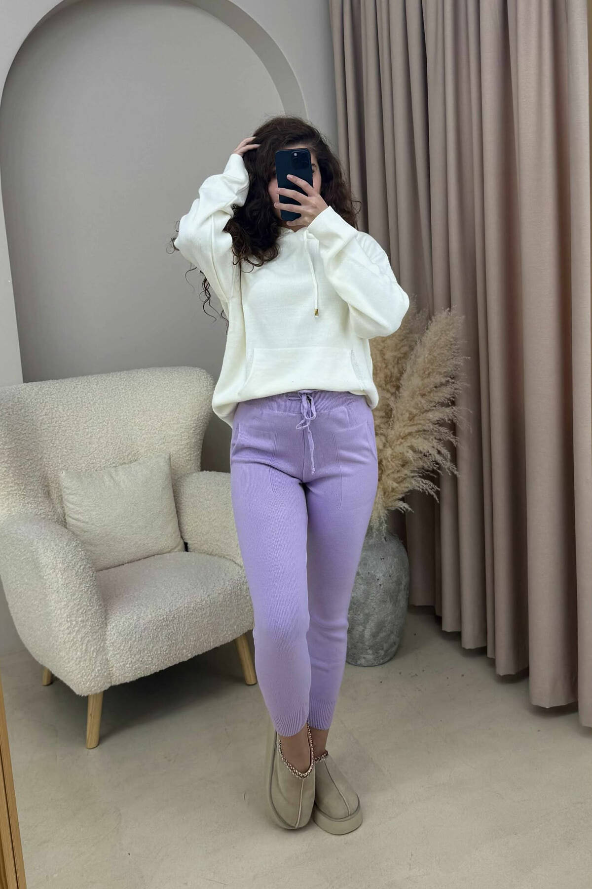 ONE COLOR LACINGS KNIT WOMEN TROUSERS LIGHT PURPLE/LEZB