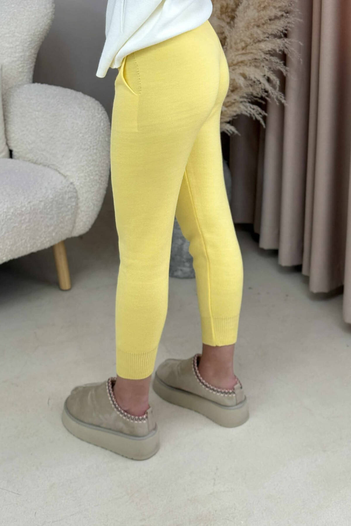 ONE COLOR LACINGS KNIT WOMEN TROUSERS YELLOW/E VERDHE