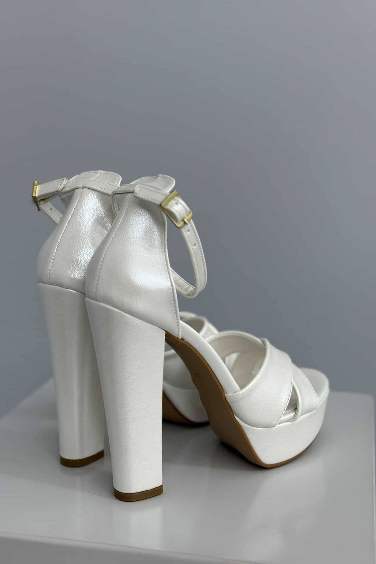 ONE COLOR LEATHER HIGH HEEL WOMEN SANDALS WHITE-E BARDHE