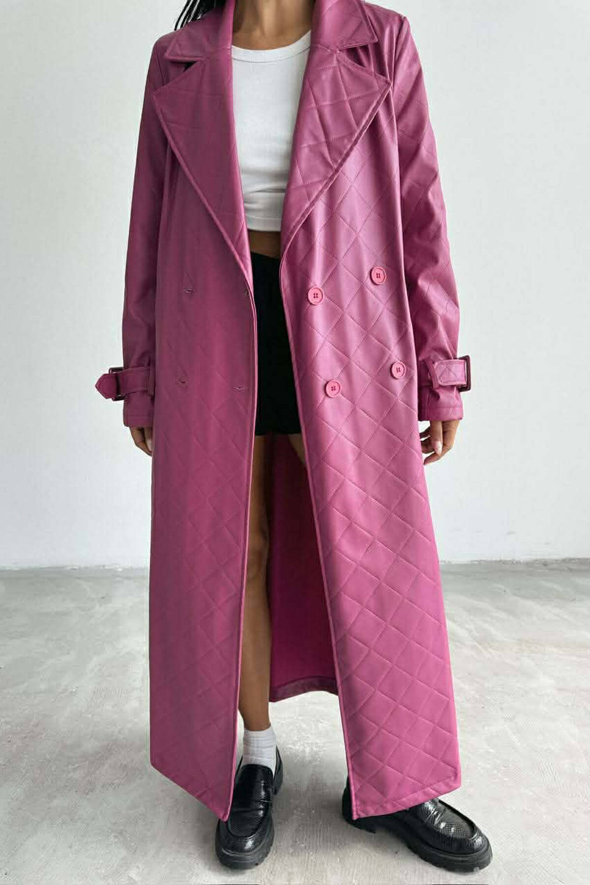 ONE COLOR LEATHER LONG WOMEN TRENCH COAT PURPLE/LEJLA