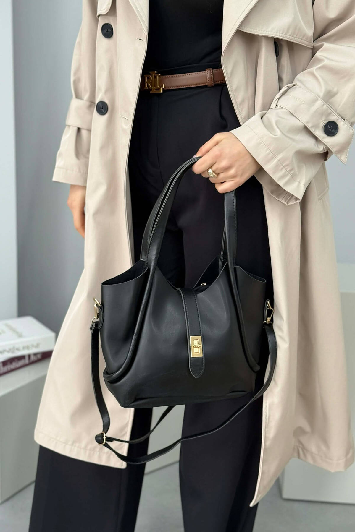 ONE COLOR LEATHER SIMPLE WOMEN BAG BLACK/ E ZEZE