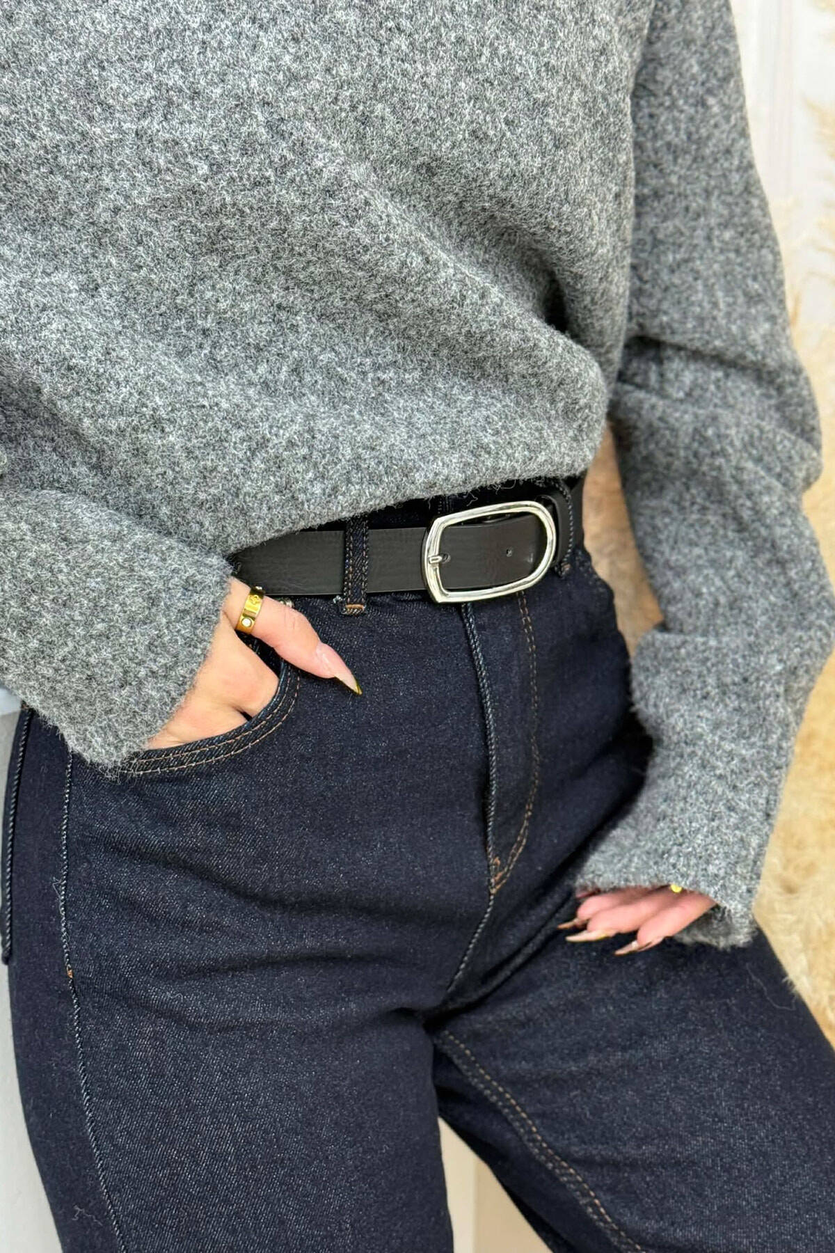 ONE COLOR LEATHER SIMPLE BUCKLE WOMEN BELT BLACK+SILVER/ZEZE+ARGJEND