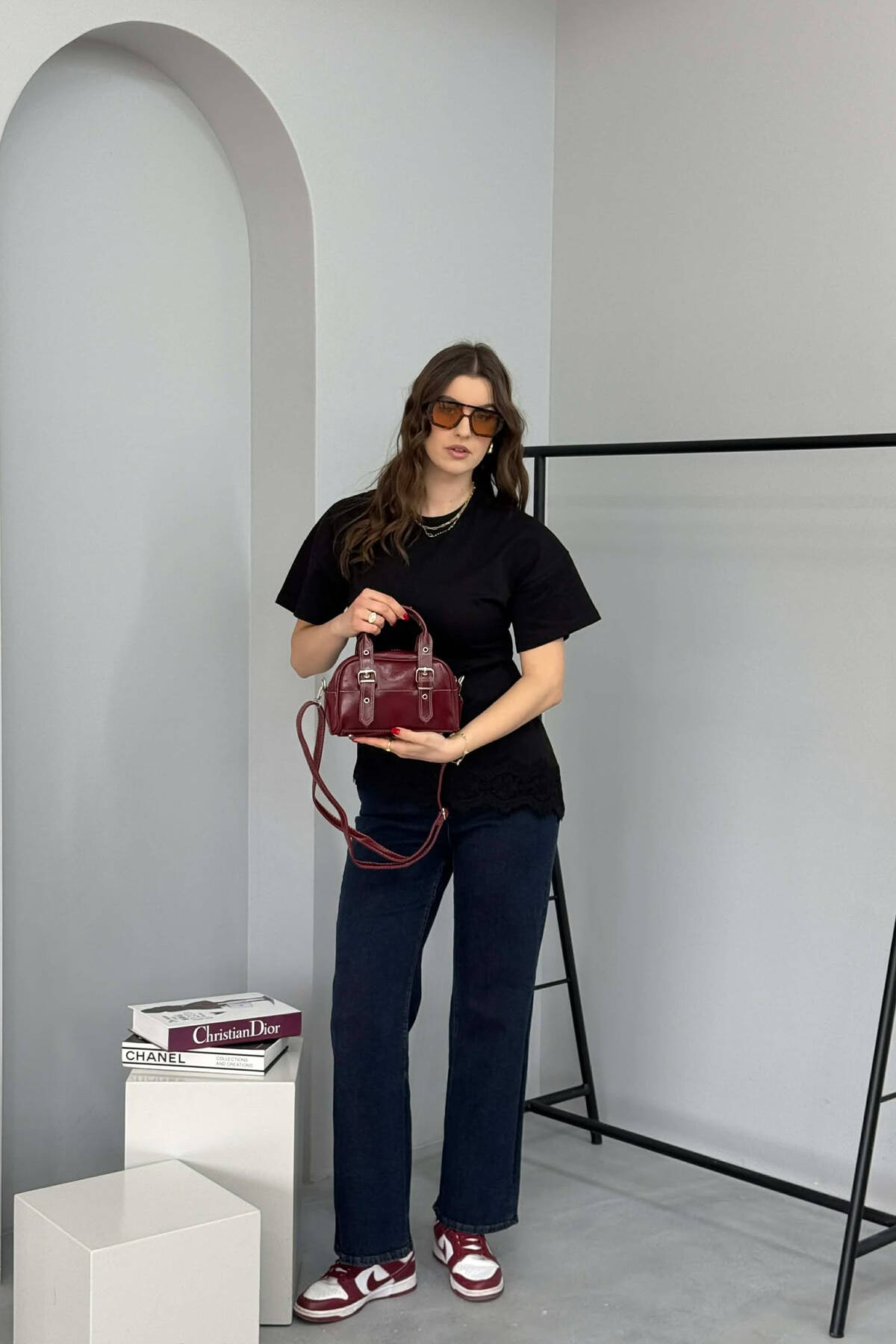 ÇANTE LEKURE NJE NGJYRESHE PER FEMRA NE NGJYRE VISHNJE