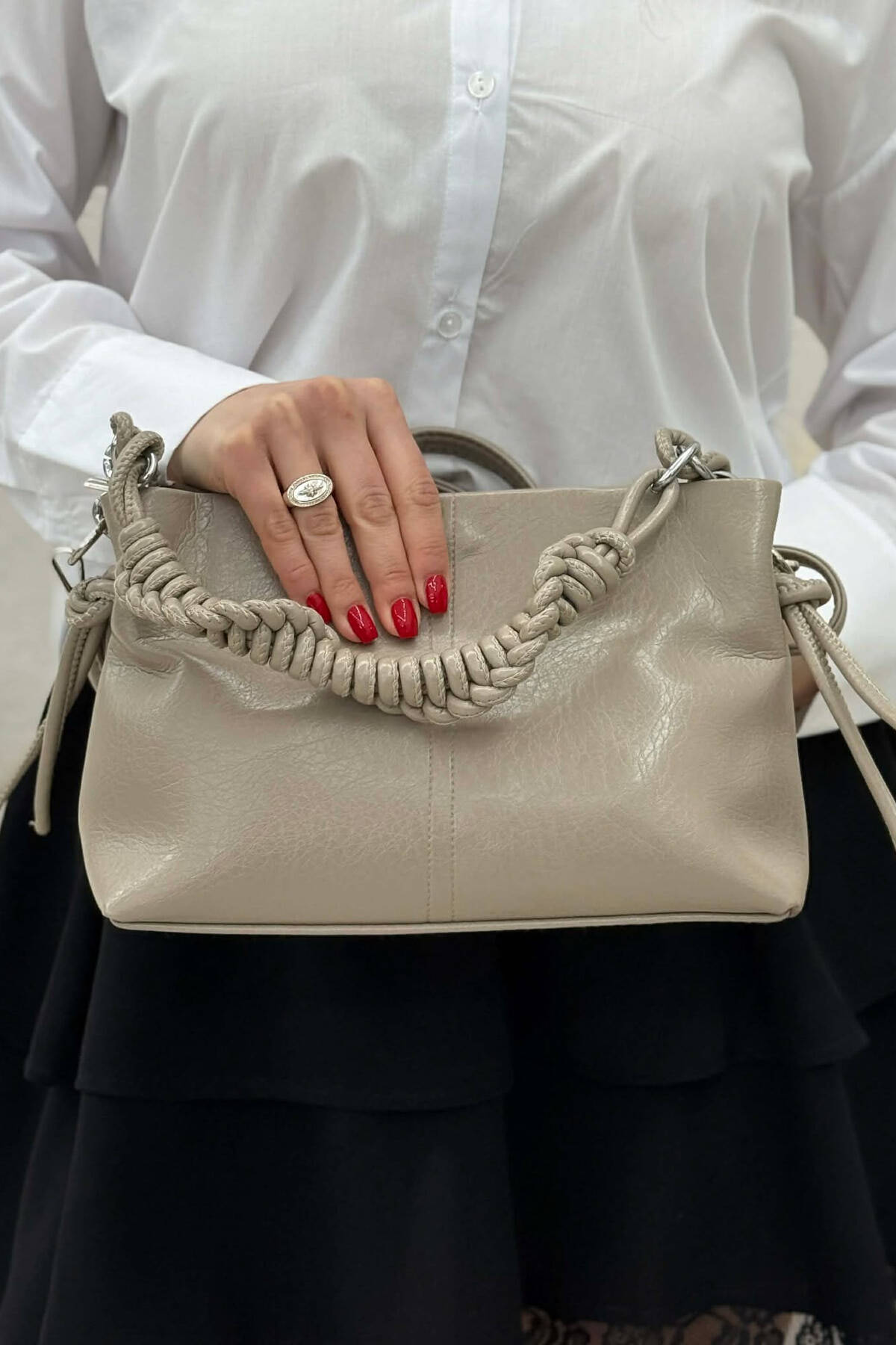 ONE COLOR LEATHER WOMEN BAG CREAM/KREM