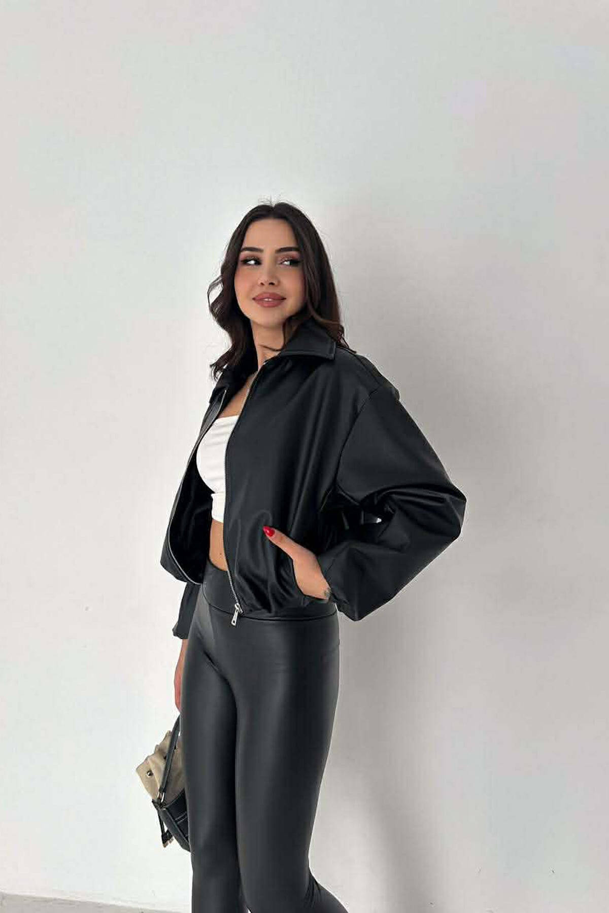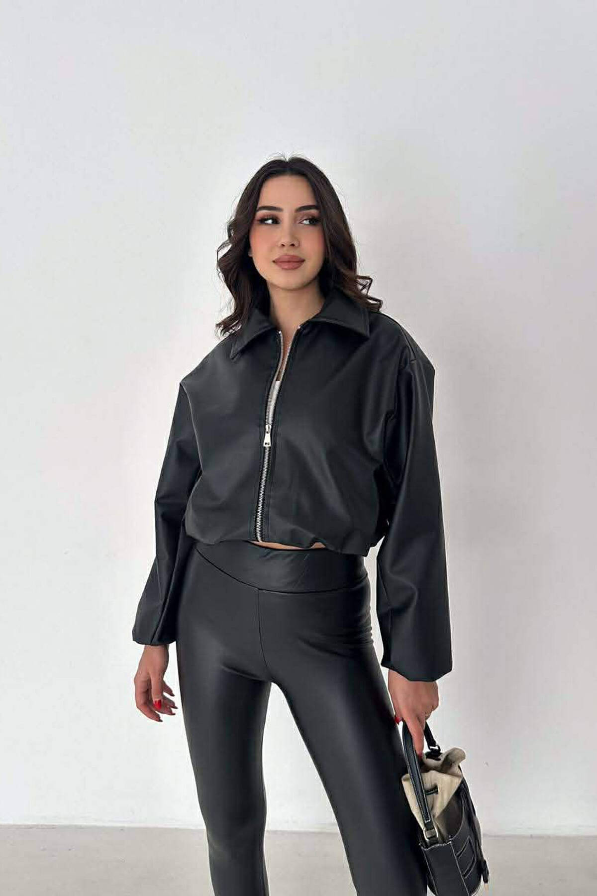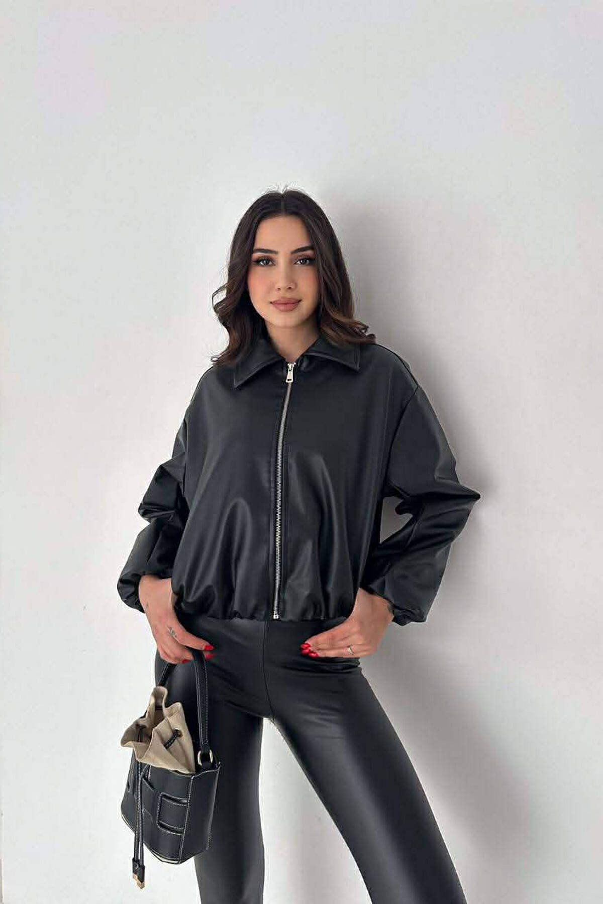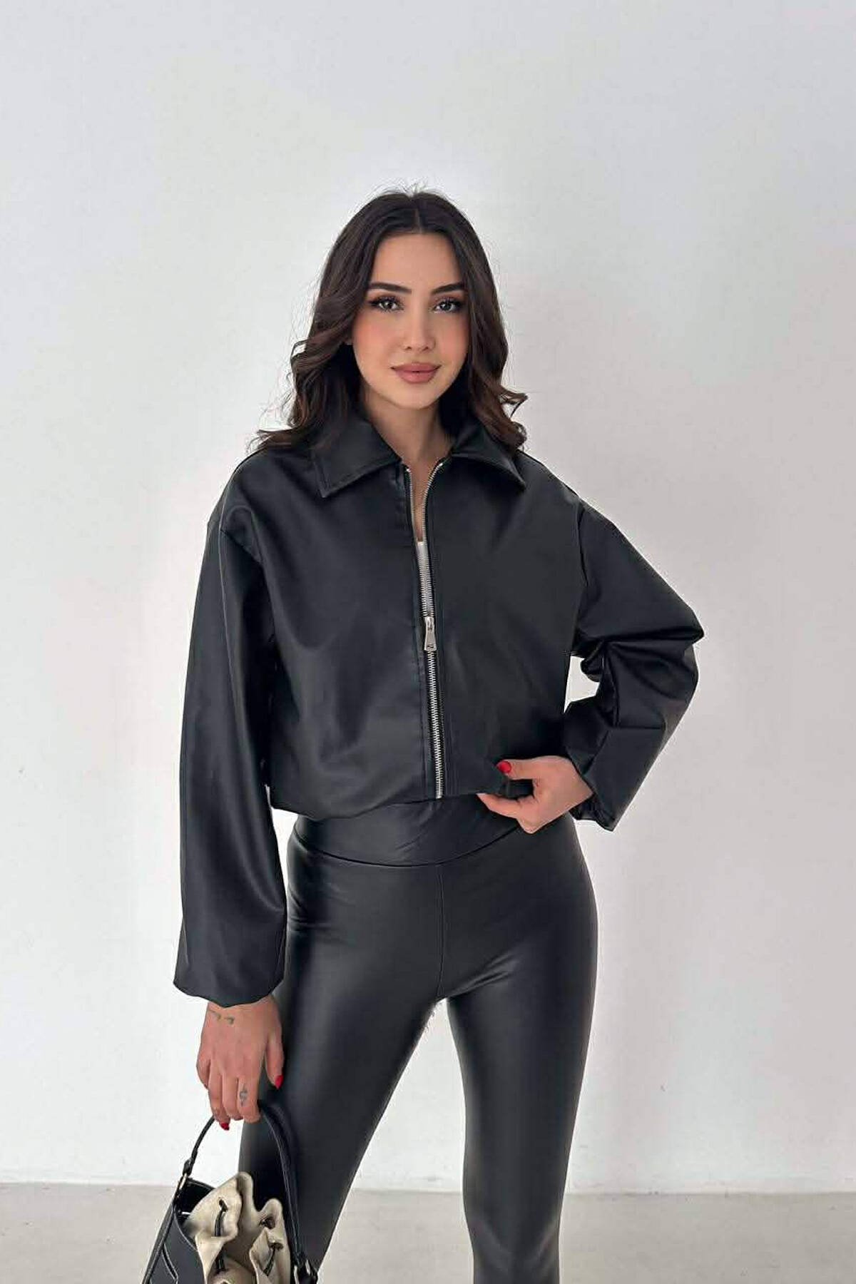 ONE COLOR LEATHER WOMAN JACKET BLACK/ E ZEZE