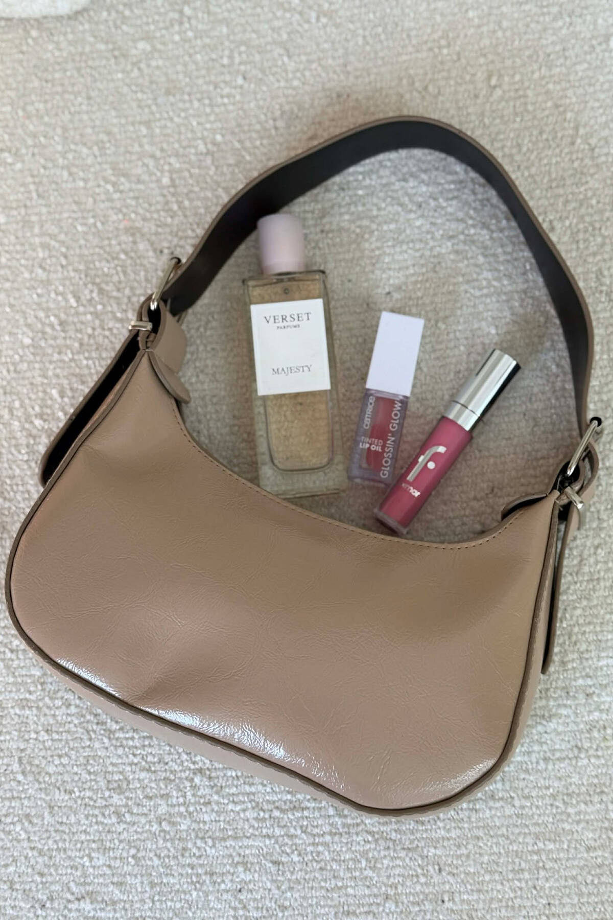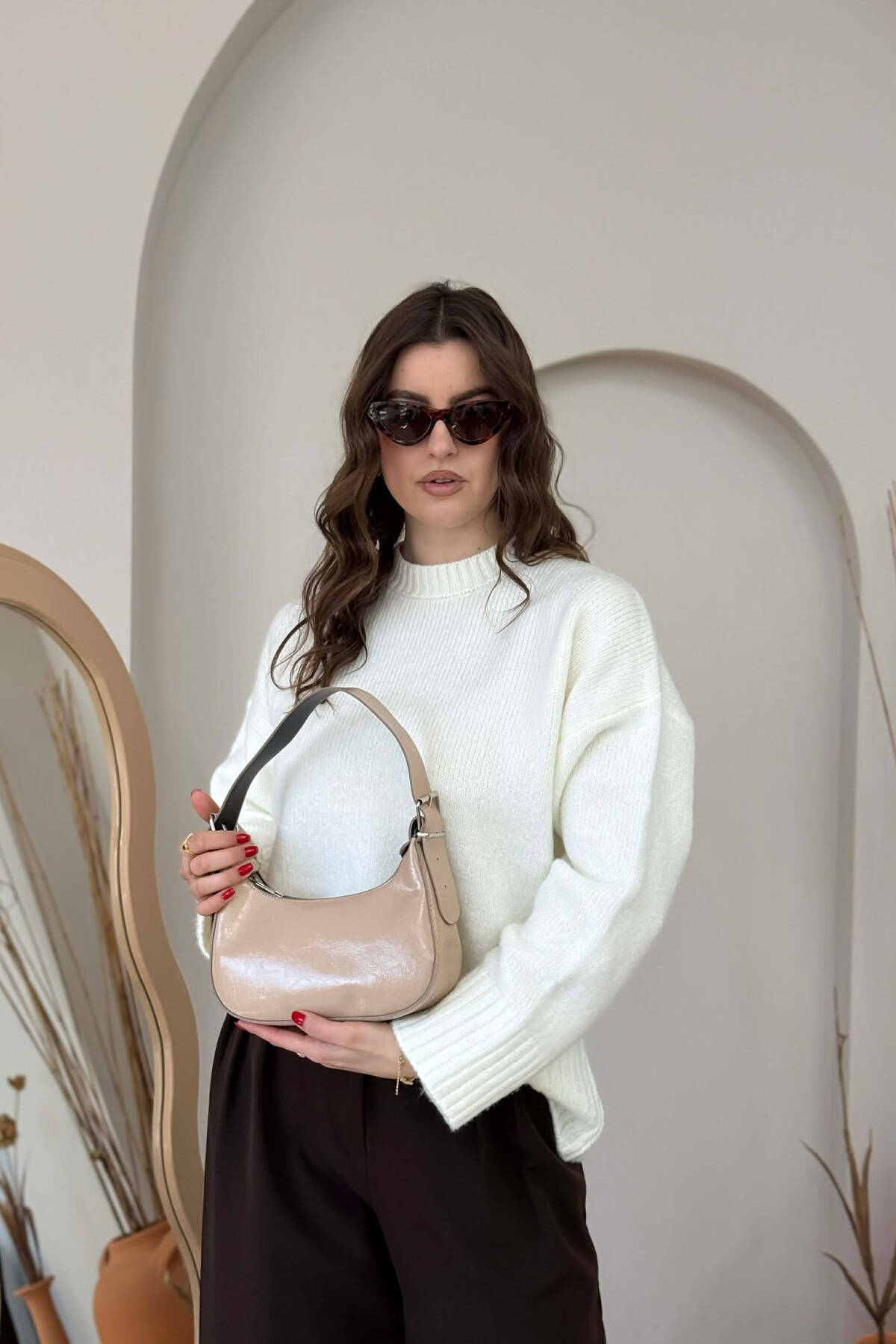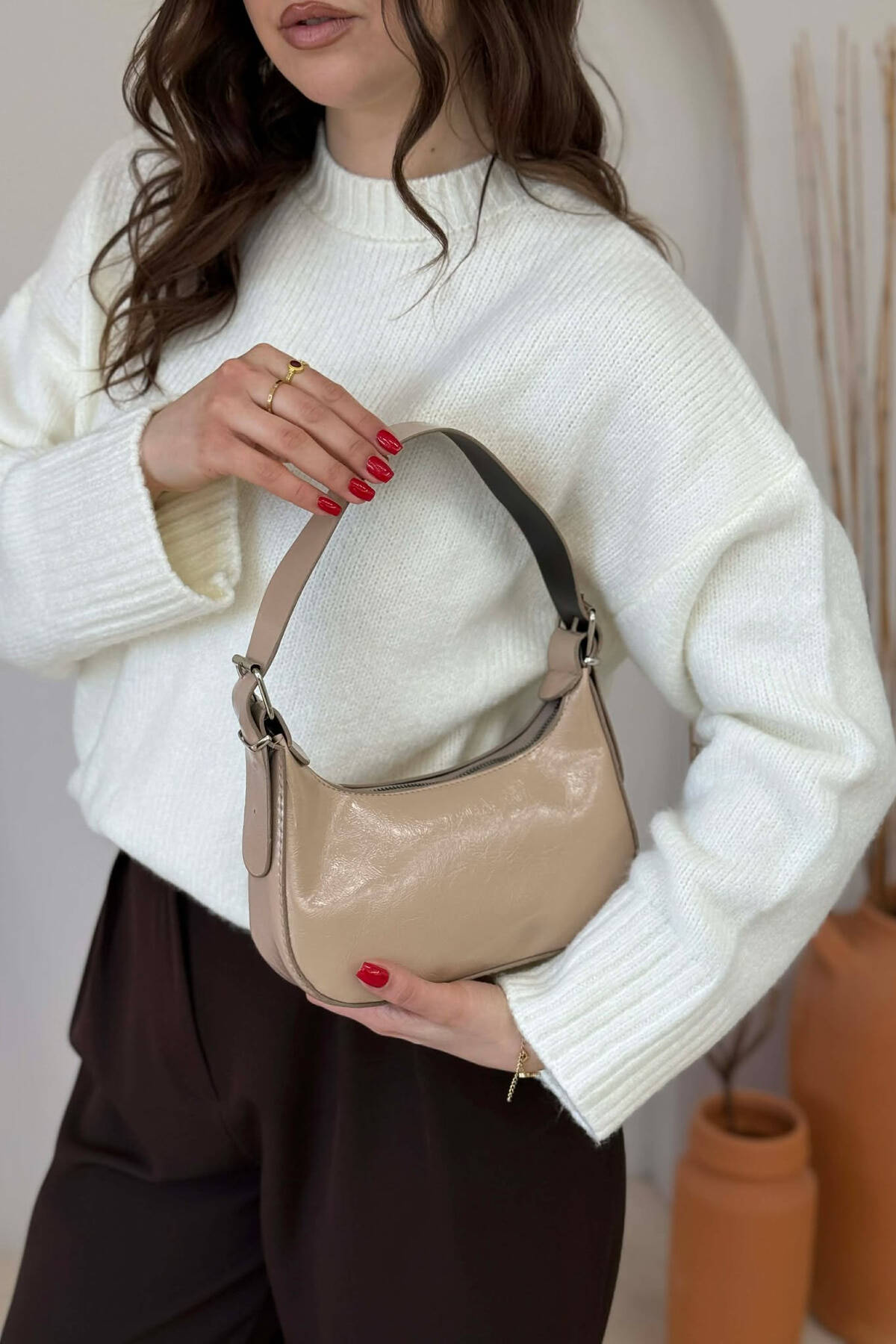 ÇANTË LËKURE E THJESHTË PËR FEMRA NË NGJYRËN BEZHË