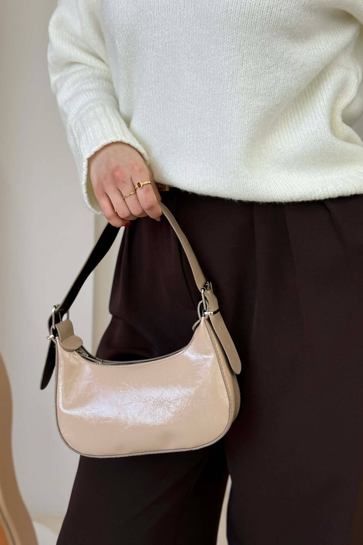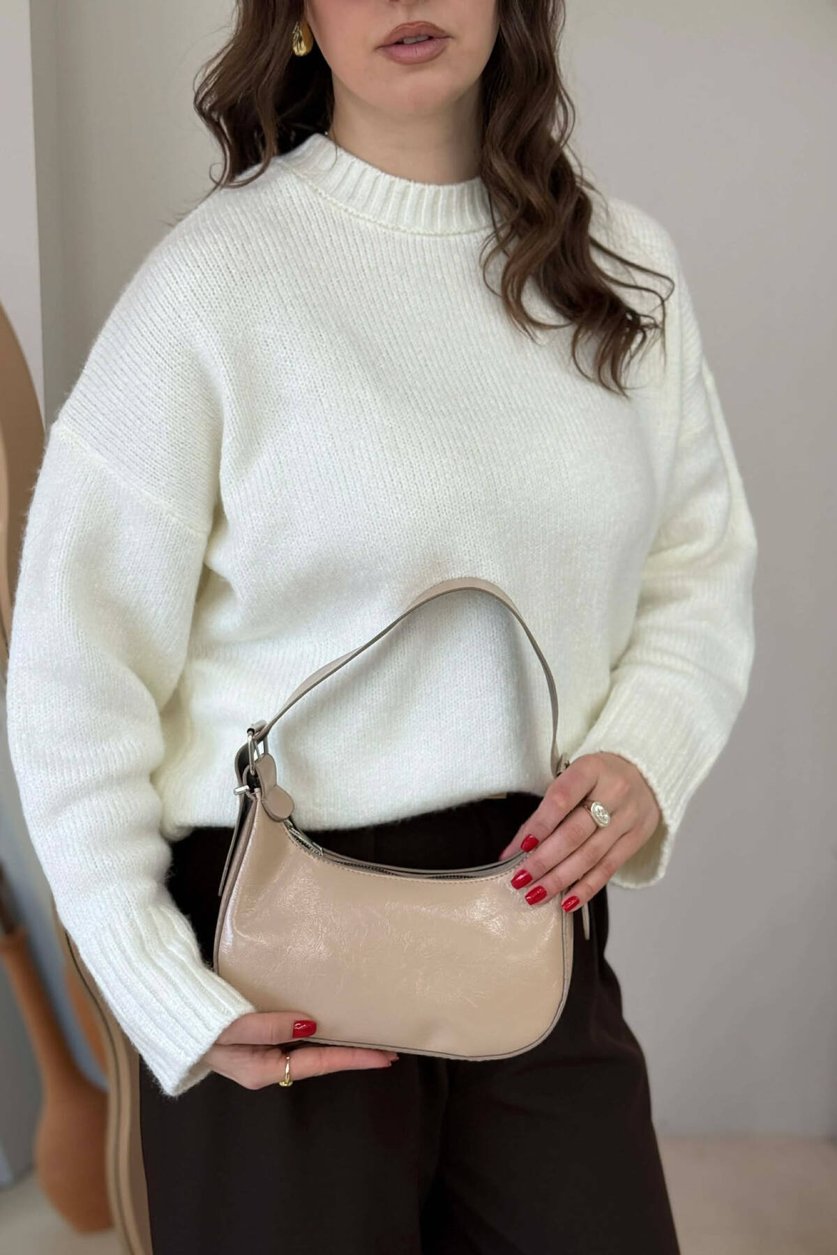 ÇANTË LËKURE E THJESHTË PËR FEMRA NË NGJYRE BEZHE TE ZBARDHUR