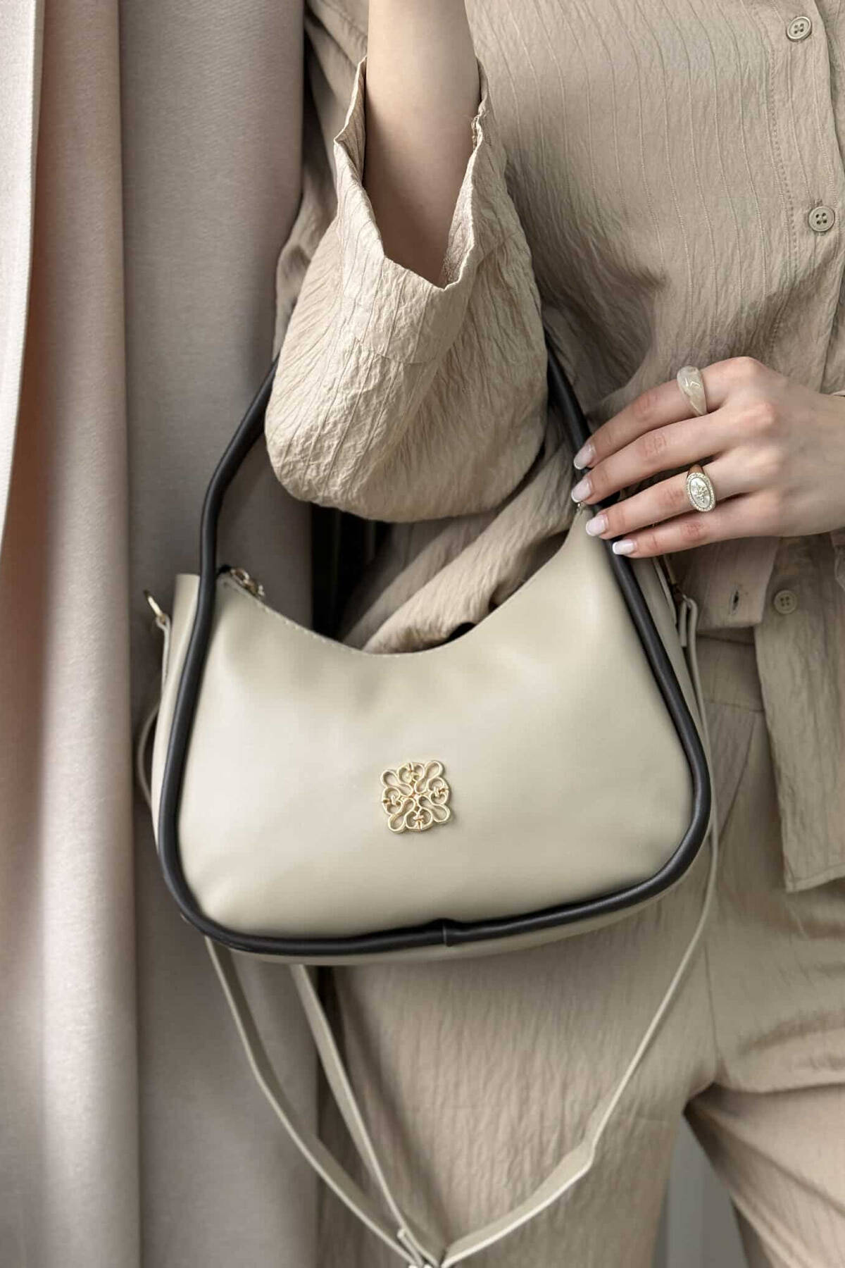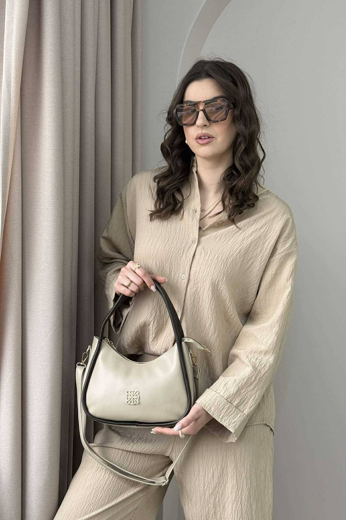 ONE COLOR LEATHER WOMEN BAG BEIGE+DARK BROWN/BEZHE+KAFE ERRET
