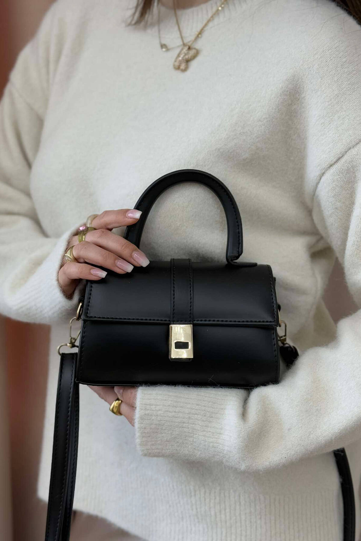 ONE COLOR SHINNY DETAILS WOMAN BAG BLACK/ E ZEZE