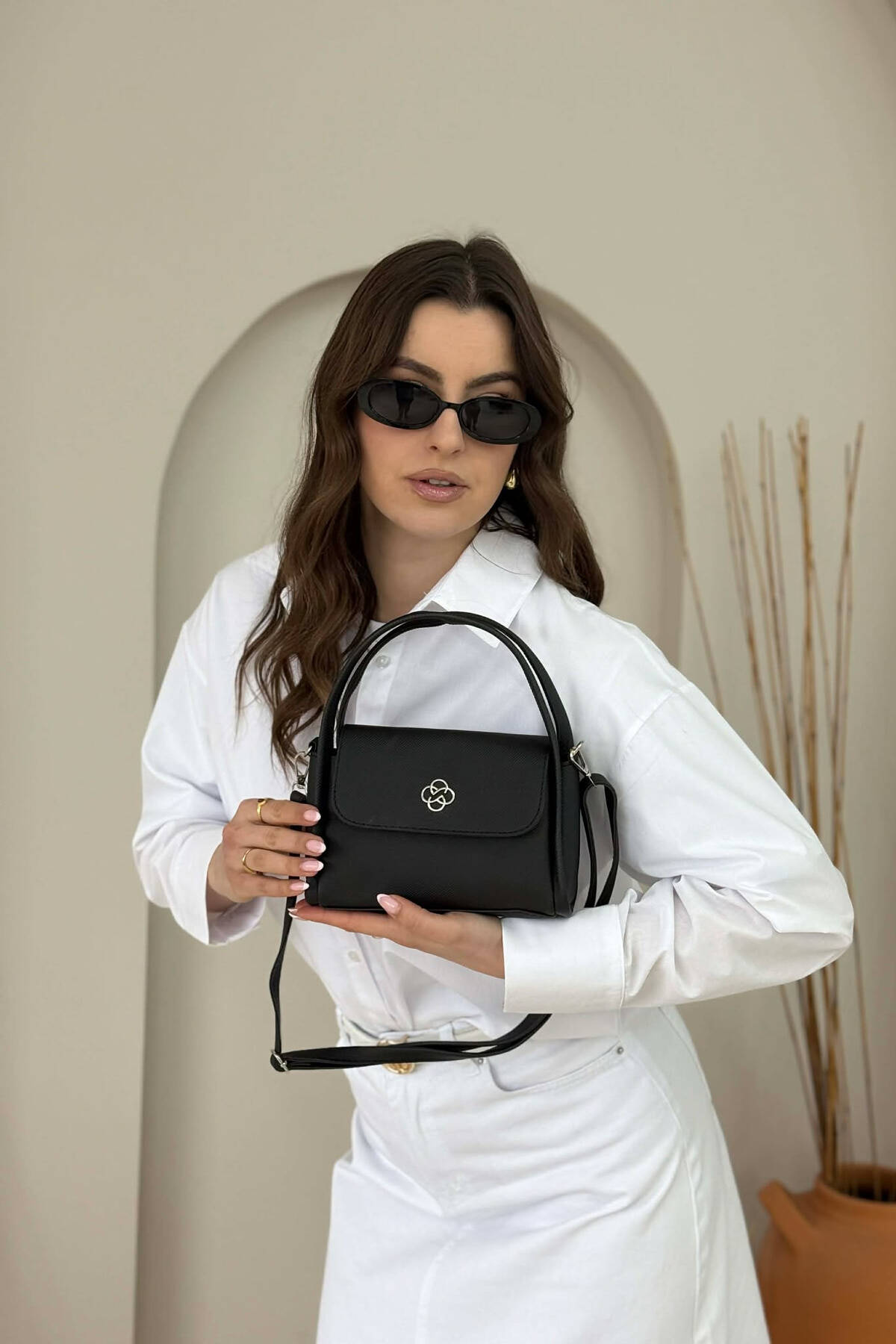 ONE COLOR SIMPLE LEATHER WOMAN BAG CREAM/KREM