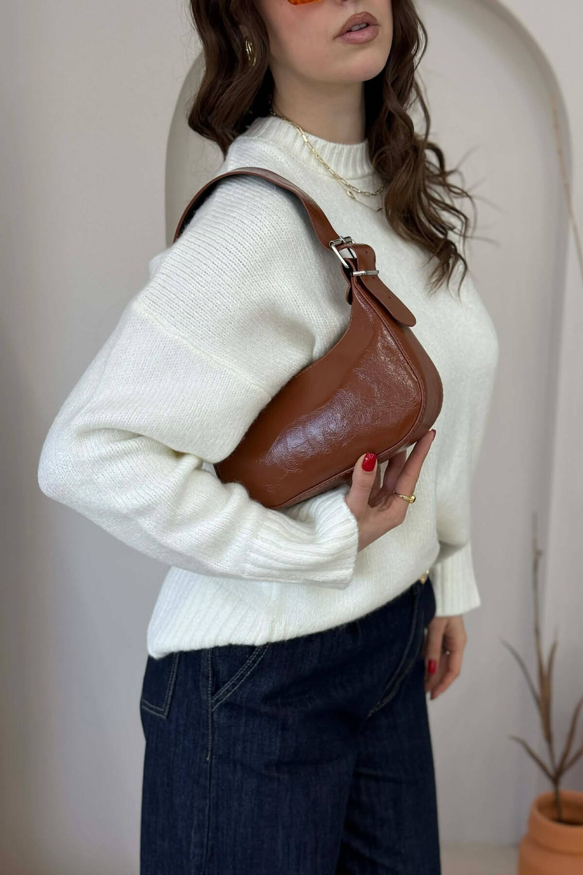 ÇANTË LËKURE E THJESHTË PËR FEMRA NË NGJYRËN KAFE
