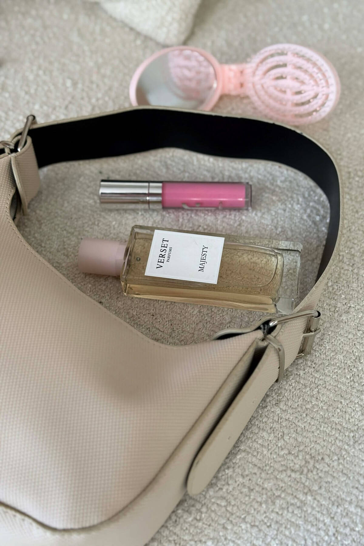 ÇANTË LËKURE E THJESHTË PËR FEMRA NË NGJYRE BEZHE TE ZBARDHUR