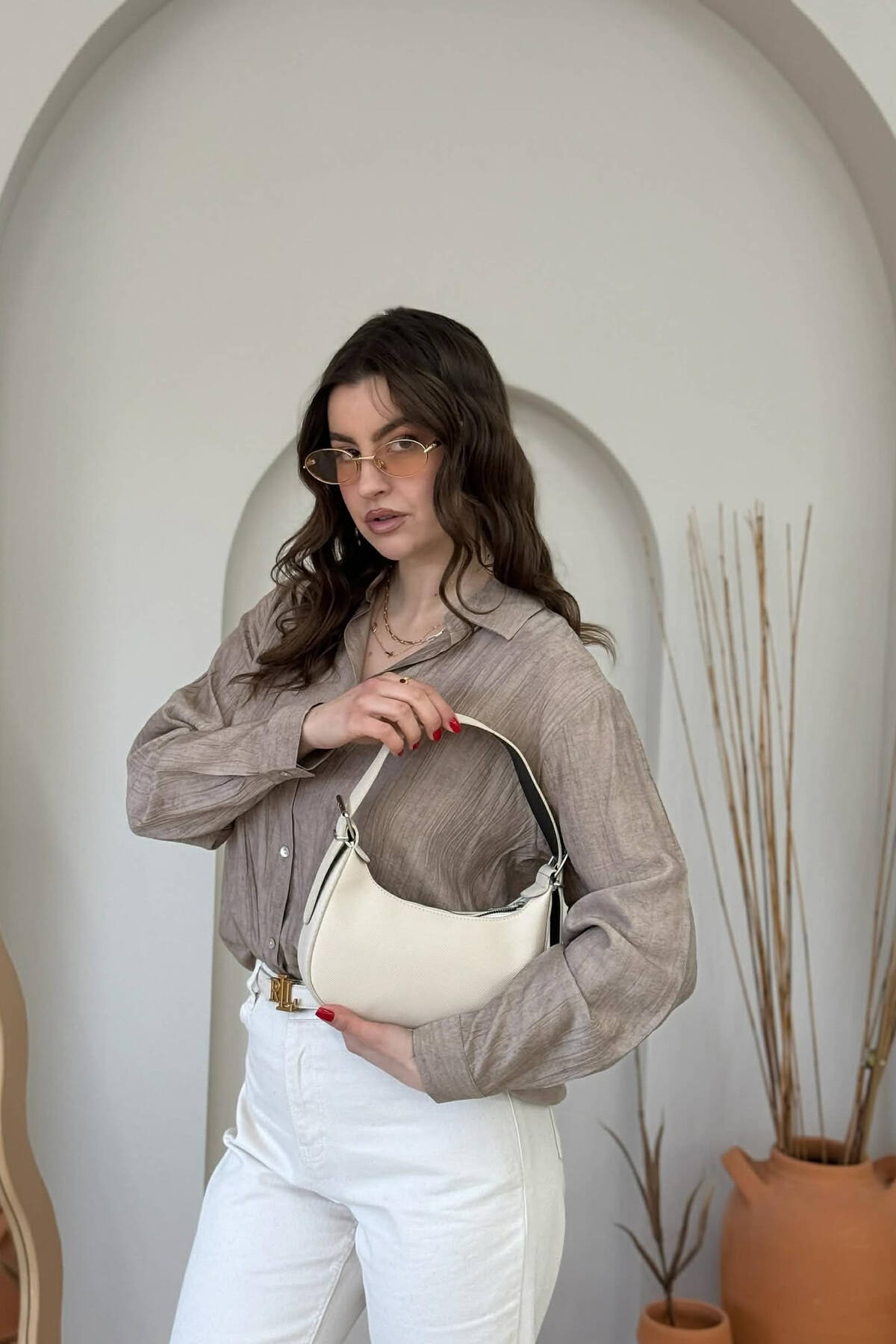 ÇANTË LËKURE E THJESHTË PËR FEMRA NË NGJYRËN KREM