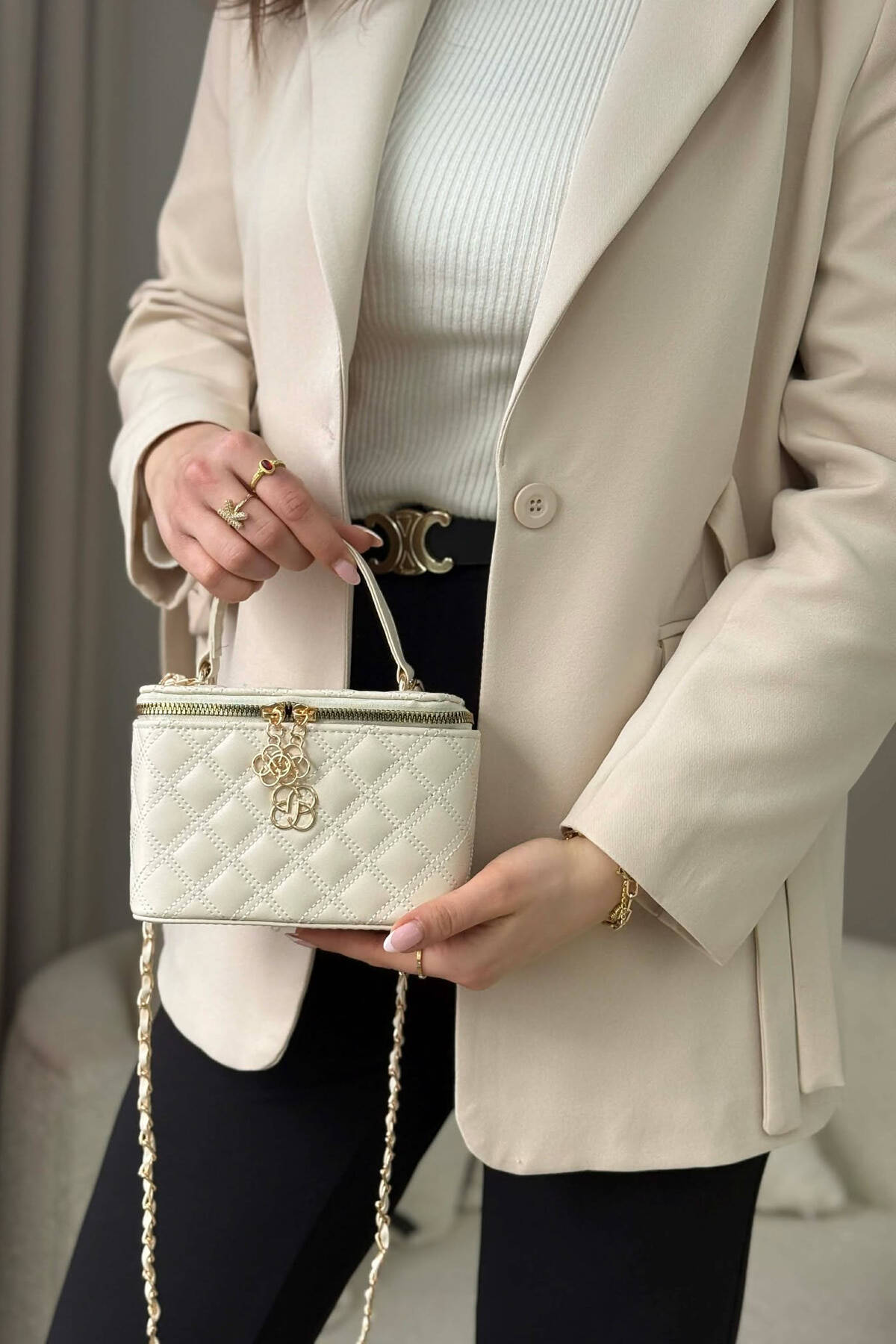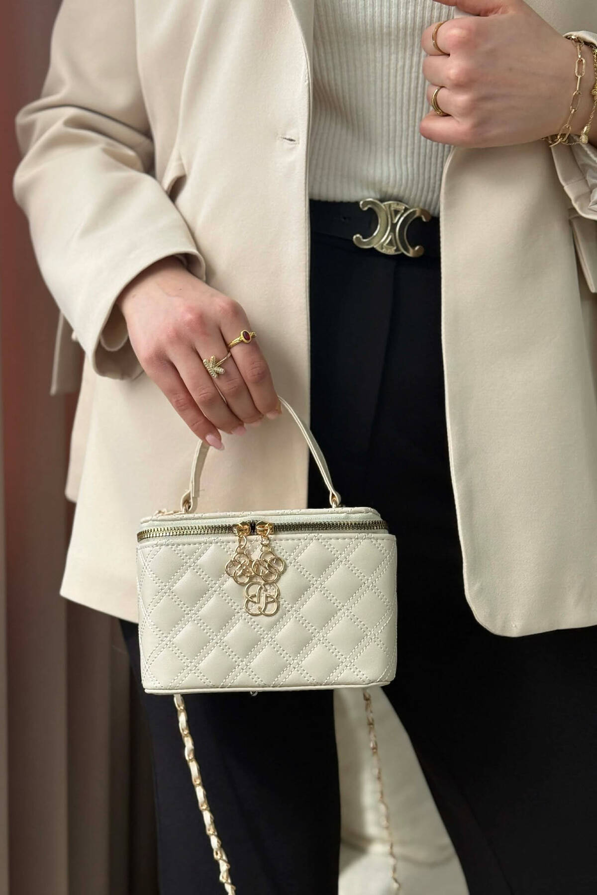 ONE COLOR LEATHER WOMEN BAG CREAM/KREM
