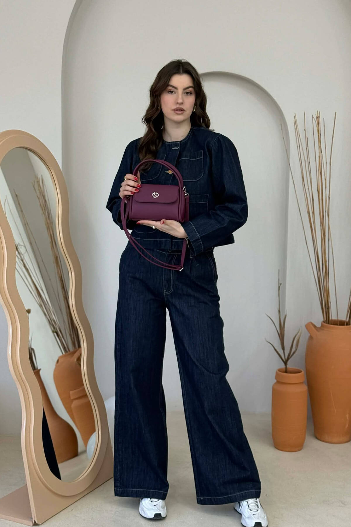 ONE COLOR LEATHER WOMEN BAG PURPLE/LEJLA