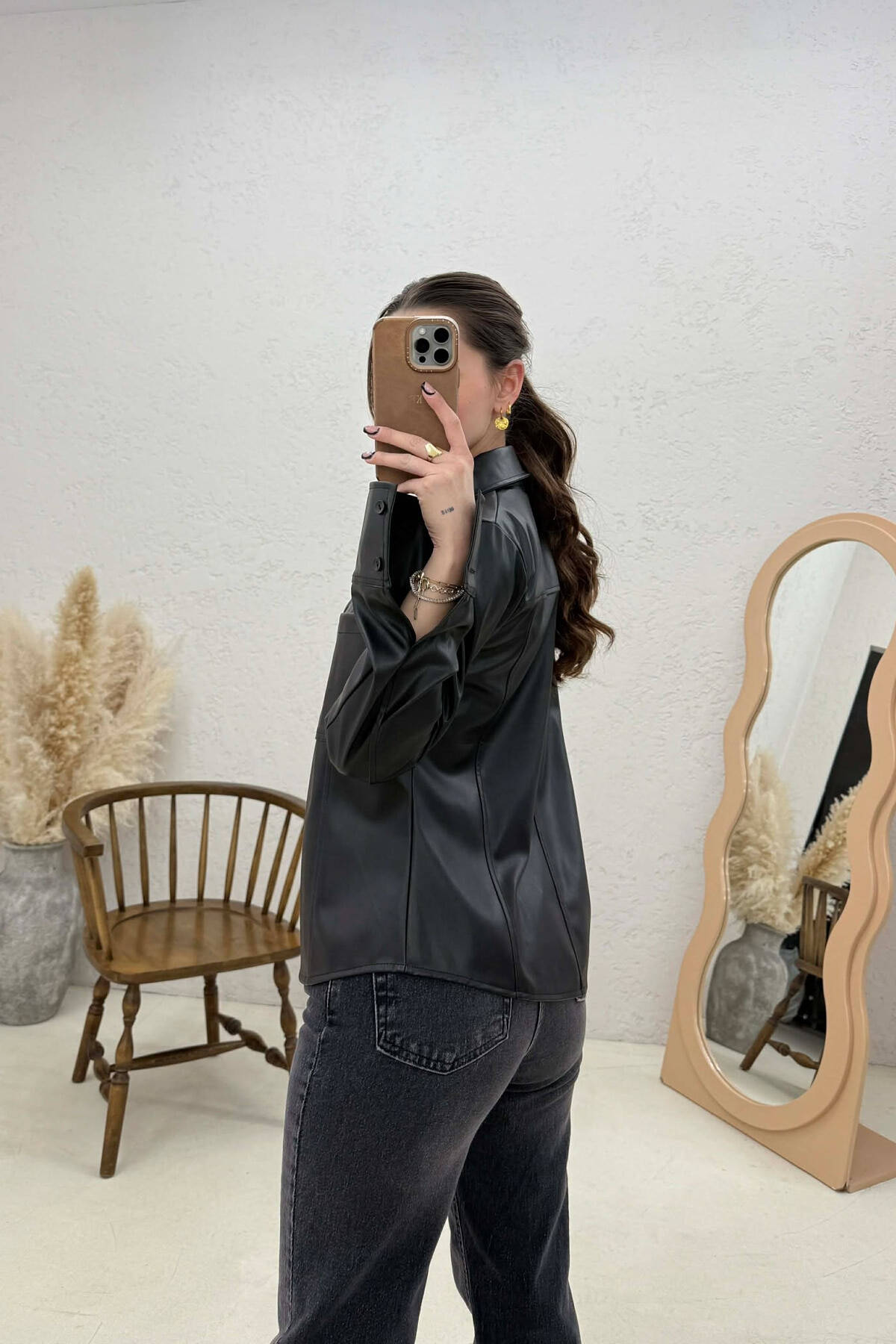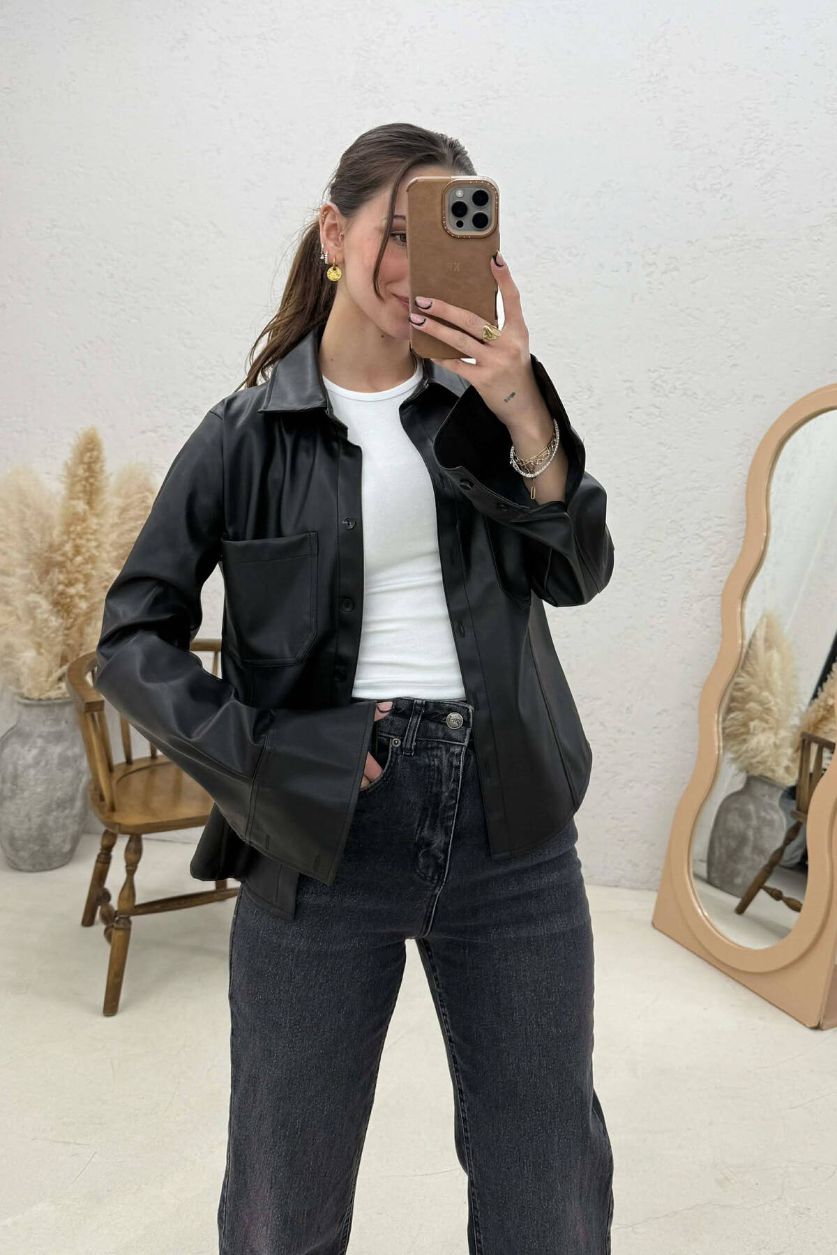 ONE COLOR LEATHER WOMEN JACKET BLACK/ E ZEZE