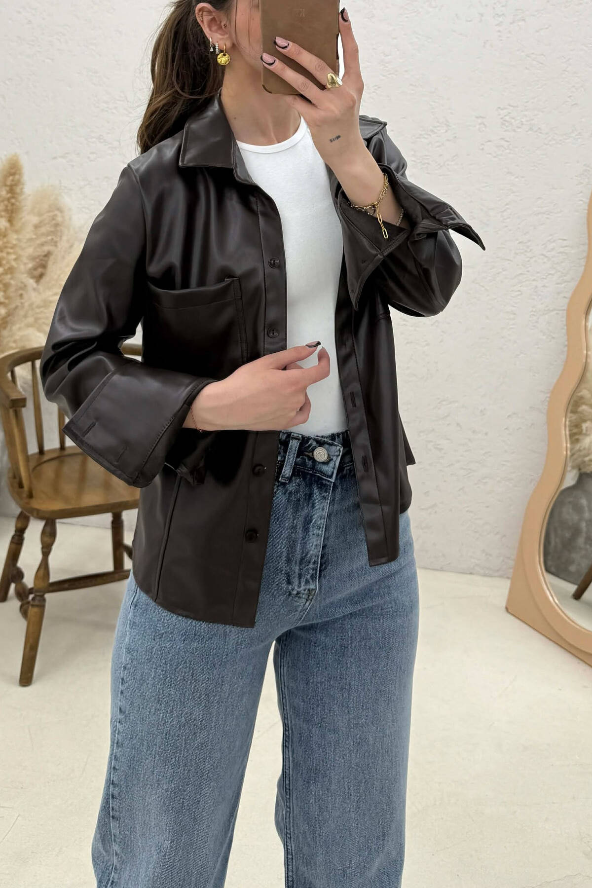XHAKETË NJË NGJYRËSHE ME DETAJIN E LIDHSES PËR FEMRA NË NGJYRE KAFE