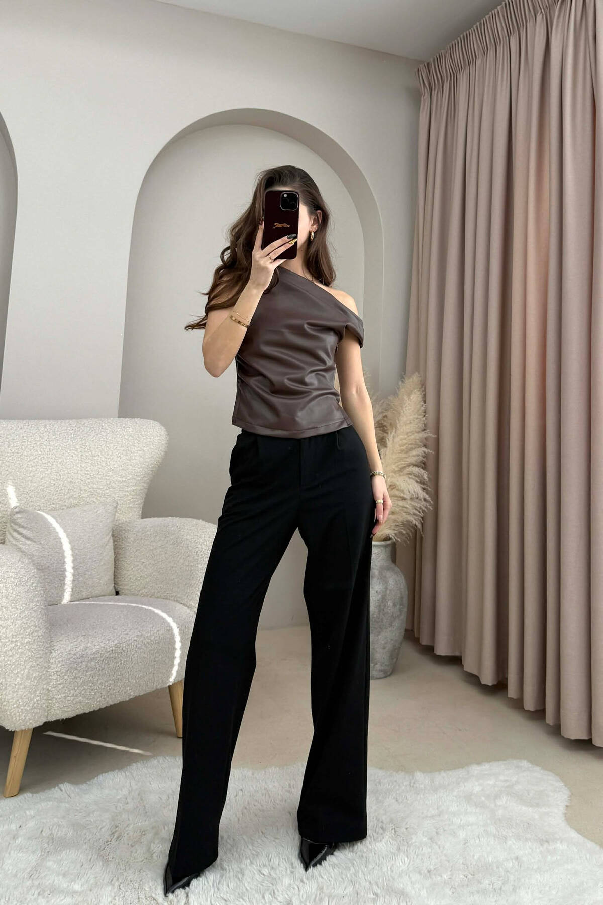 KANATJERE E THJESHTË NJË NGJYRËSHE PËR FEMRA NË NGJYRË KAFE TË ERRËT