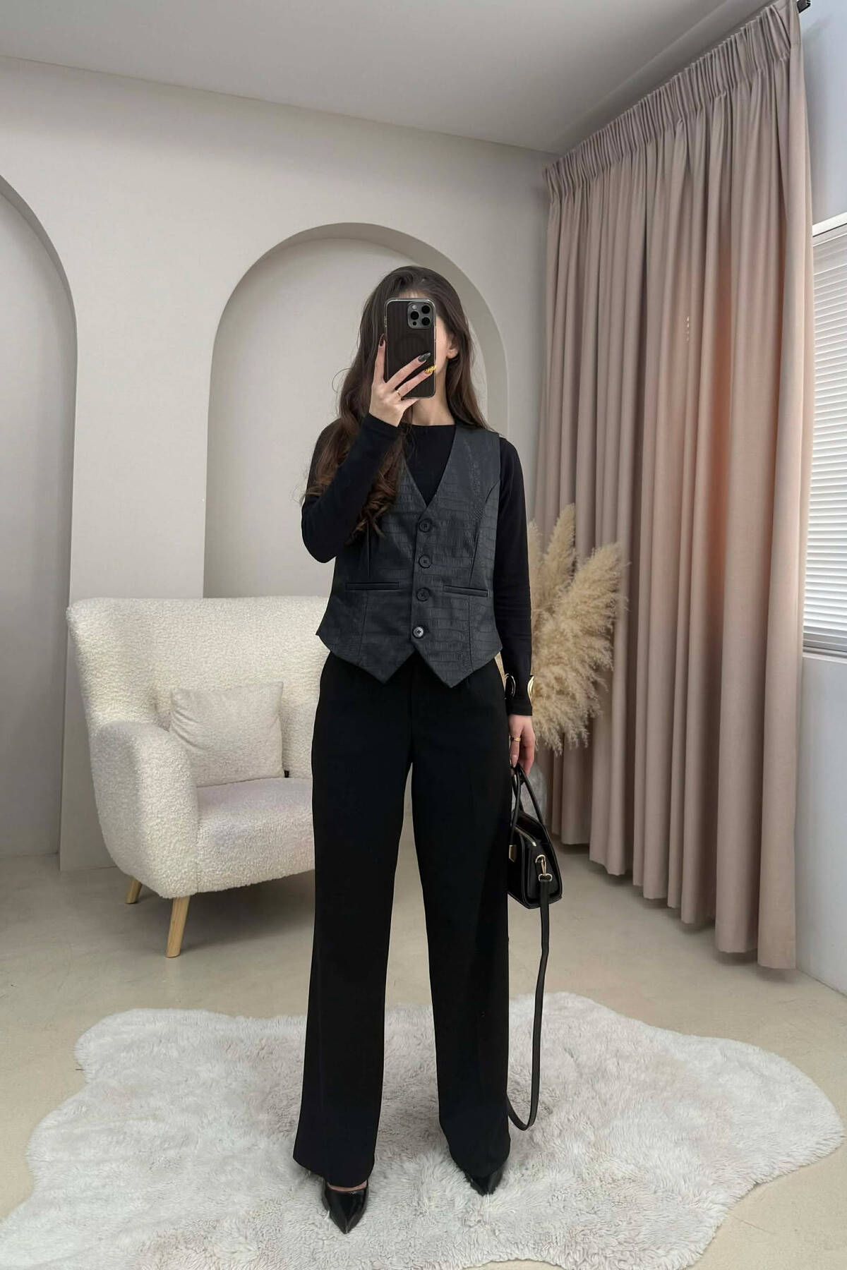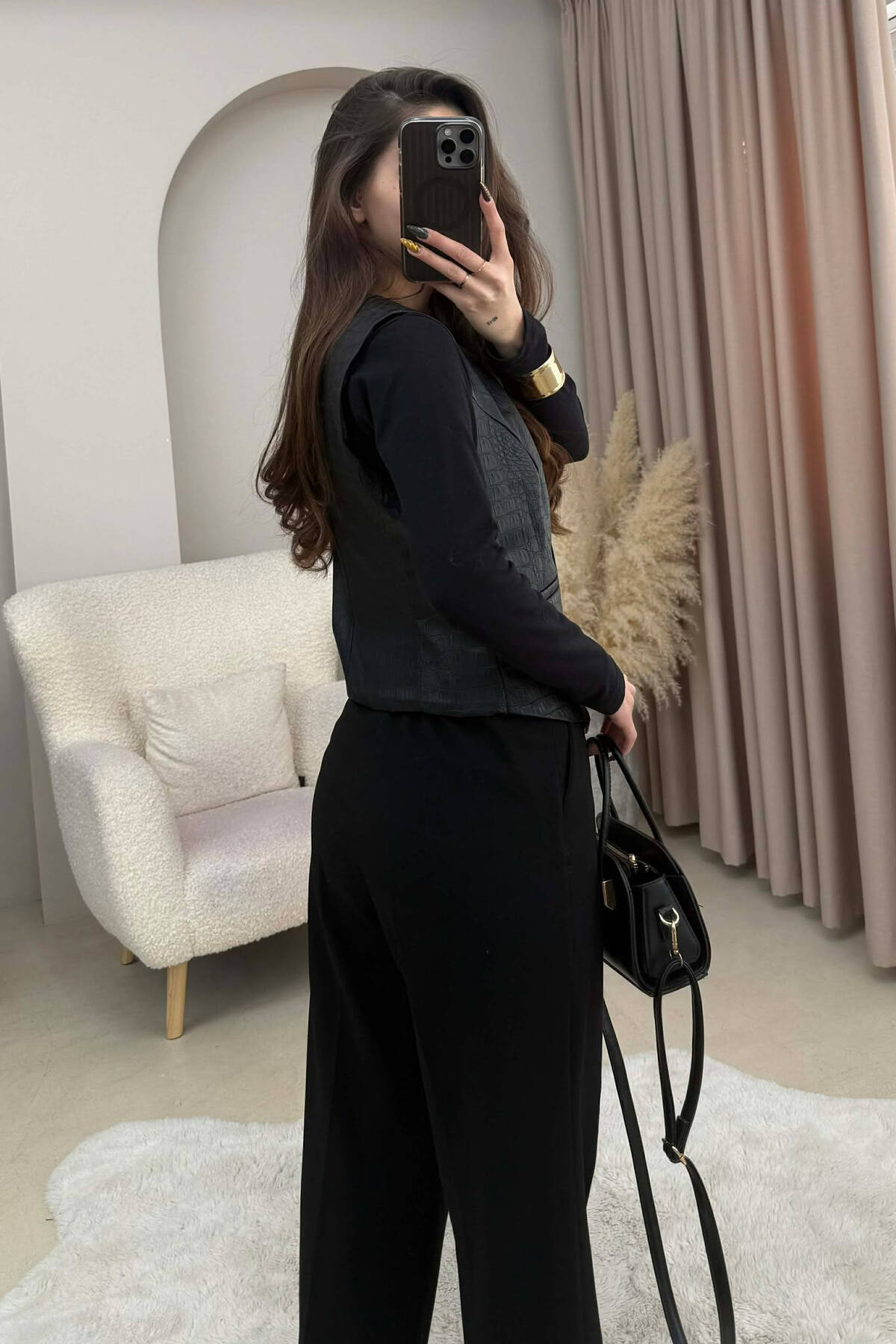 ONE COLOR LEATHER WOMEN VEST BLACK/ E ZEZE