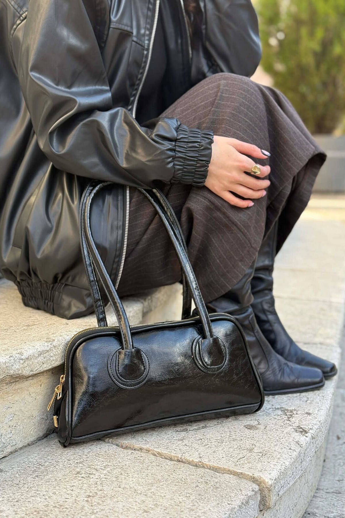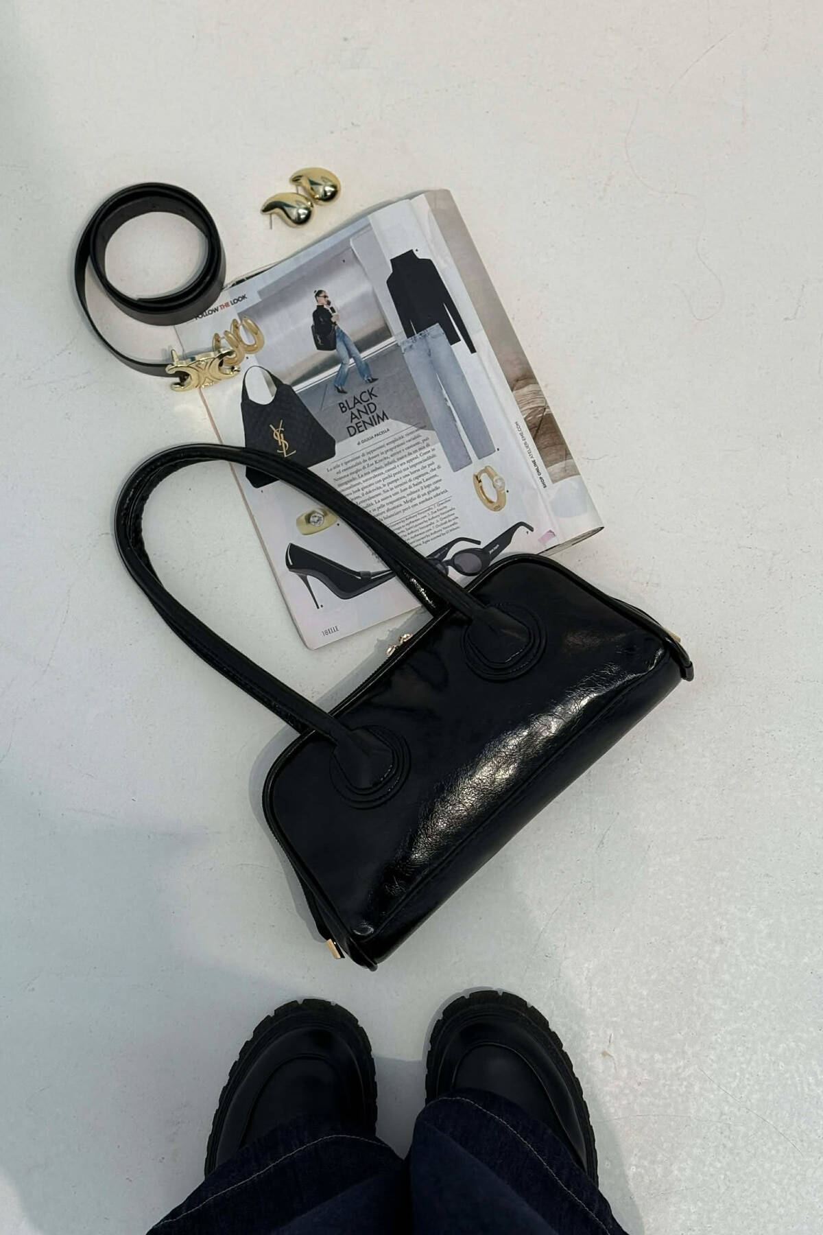 ONE COLOR SHINNY DETAILS WOMAN BAG BLACK/ E ZEZE