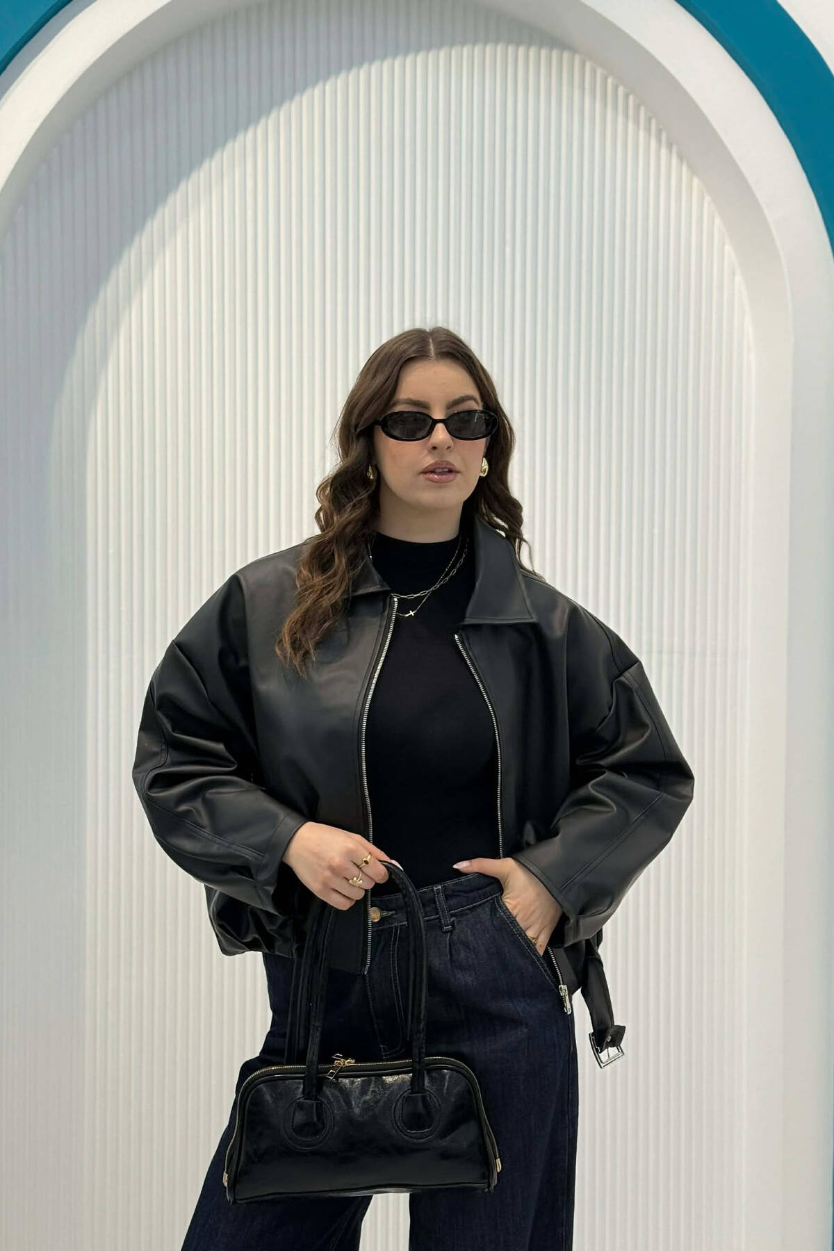 ONE COLOR LEATHER ZIPPER WOMAN BAG BLACK/ E ZEZE