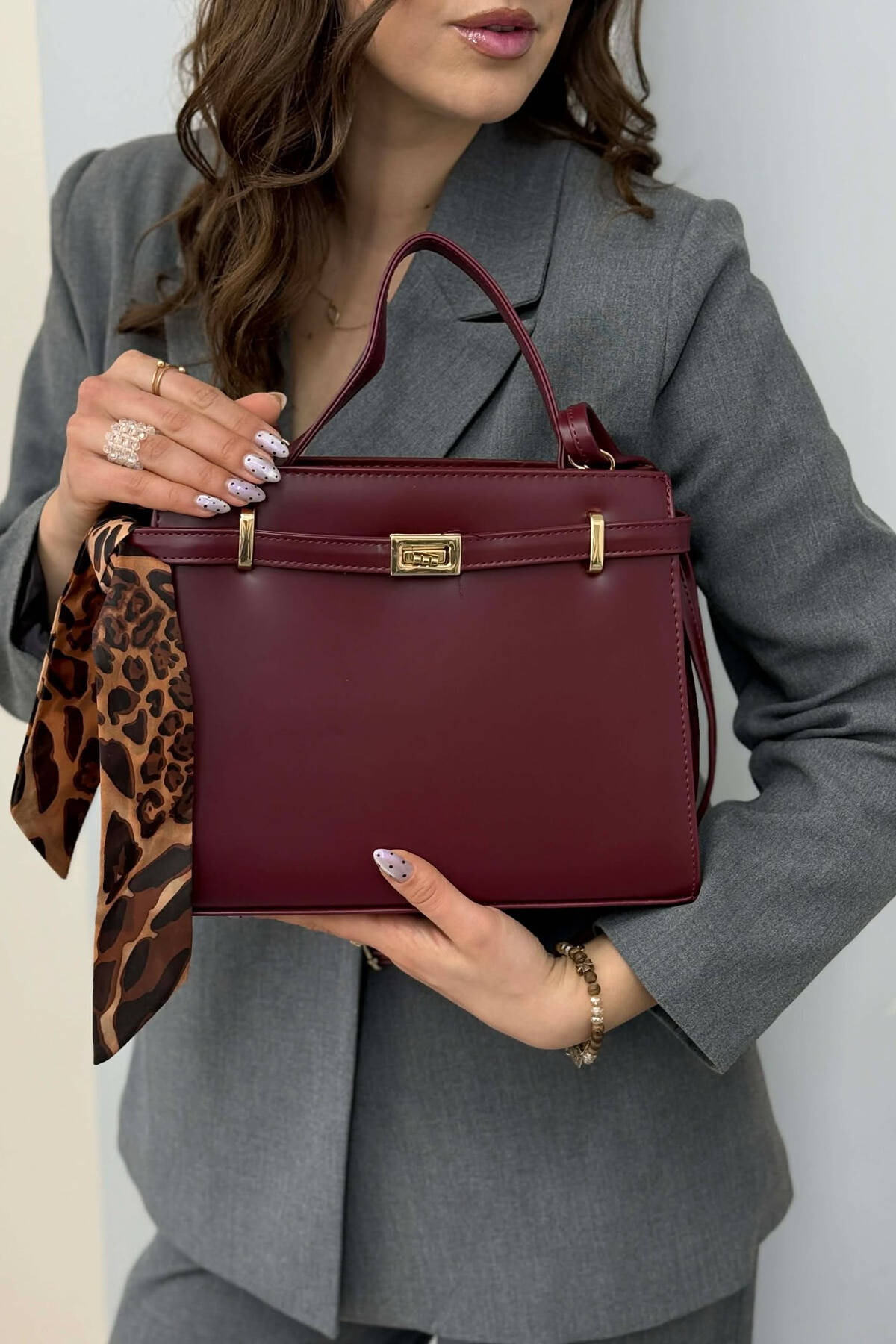 ONE COLOR LEATHER WOMEN BAG BURGUNDY/VISHNJE