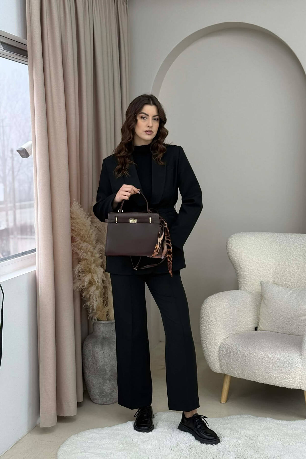 ONE COLOR LEATHER WOMEN BAG DARK BROWN/KAE