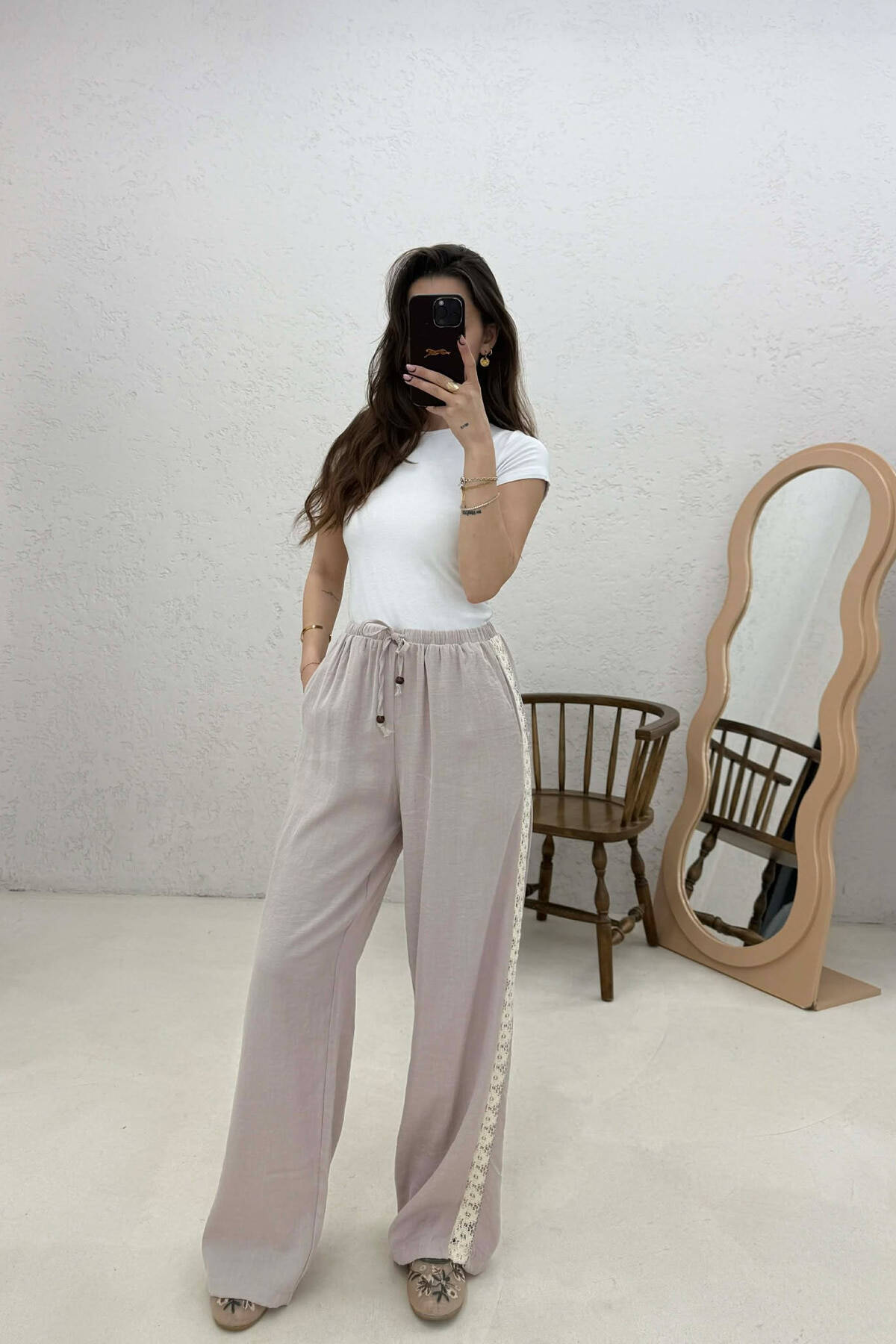 ONE COLOR LINEN WOMAN SWEATPANTS BEIGE/BEZHE