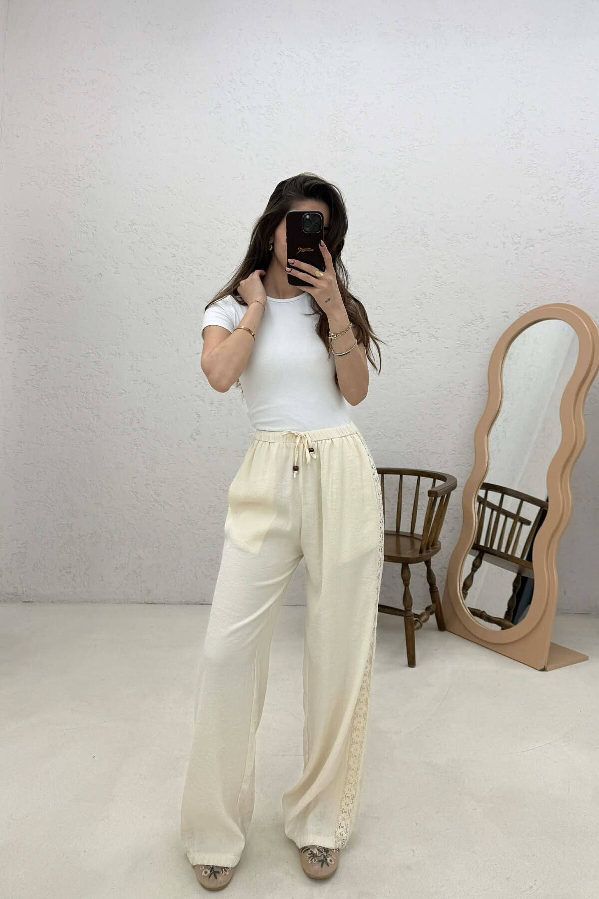 ONE COLOR LINEN WOMAN SWEATPANTS CREAM/KREM
