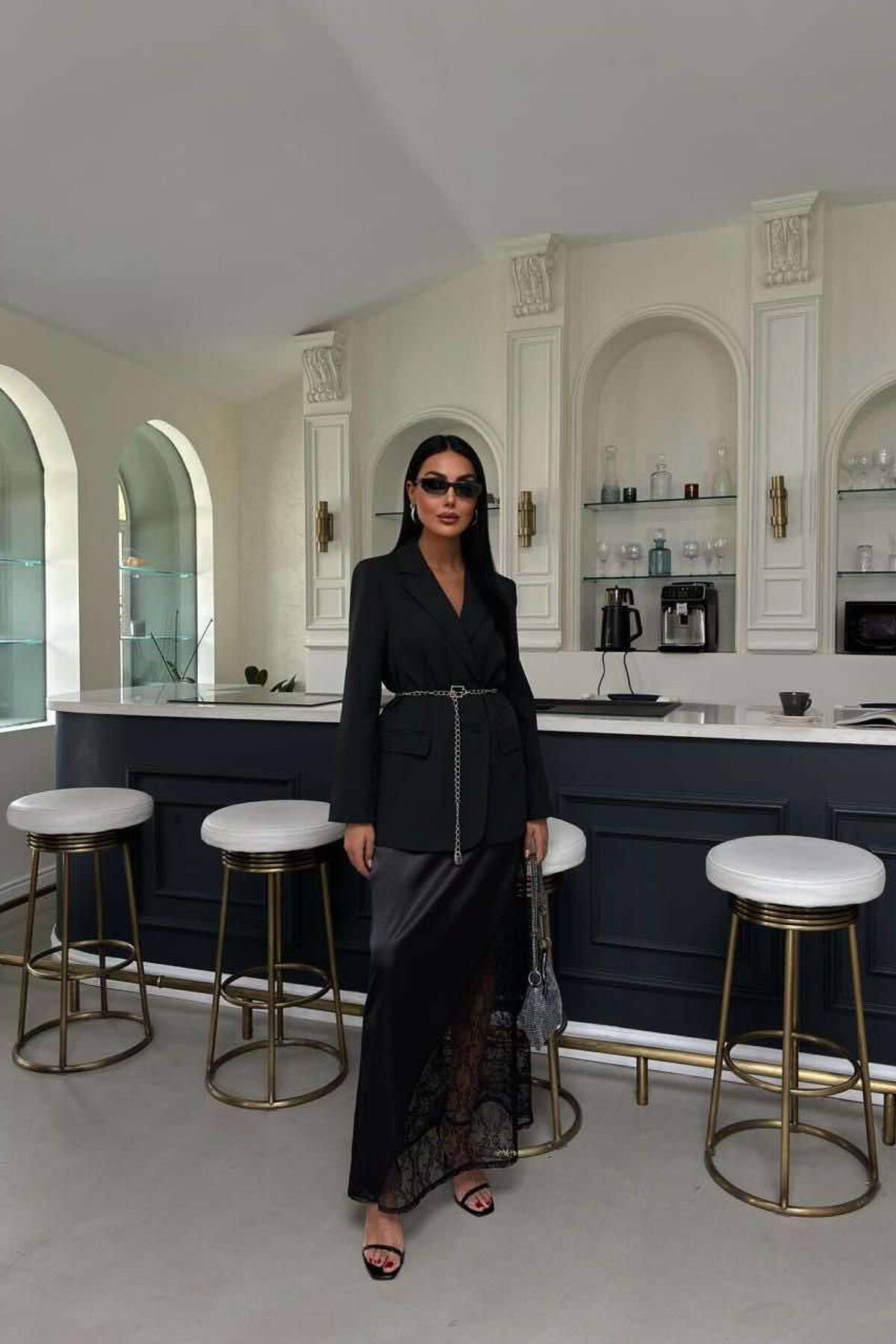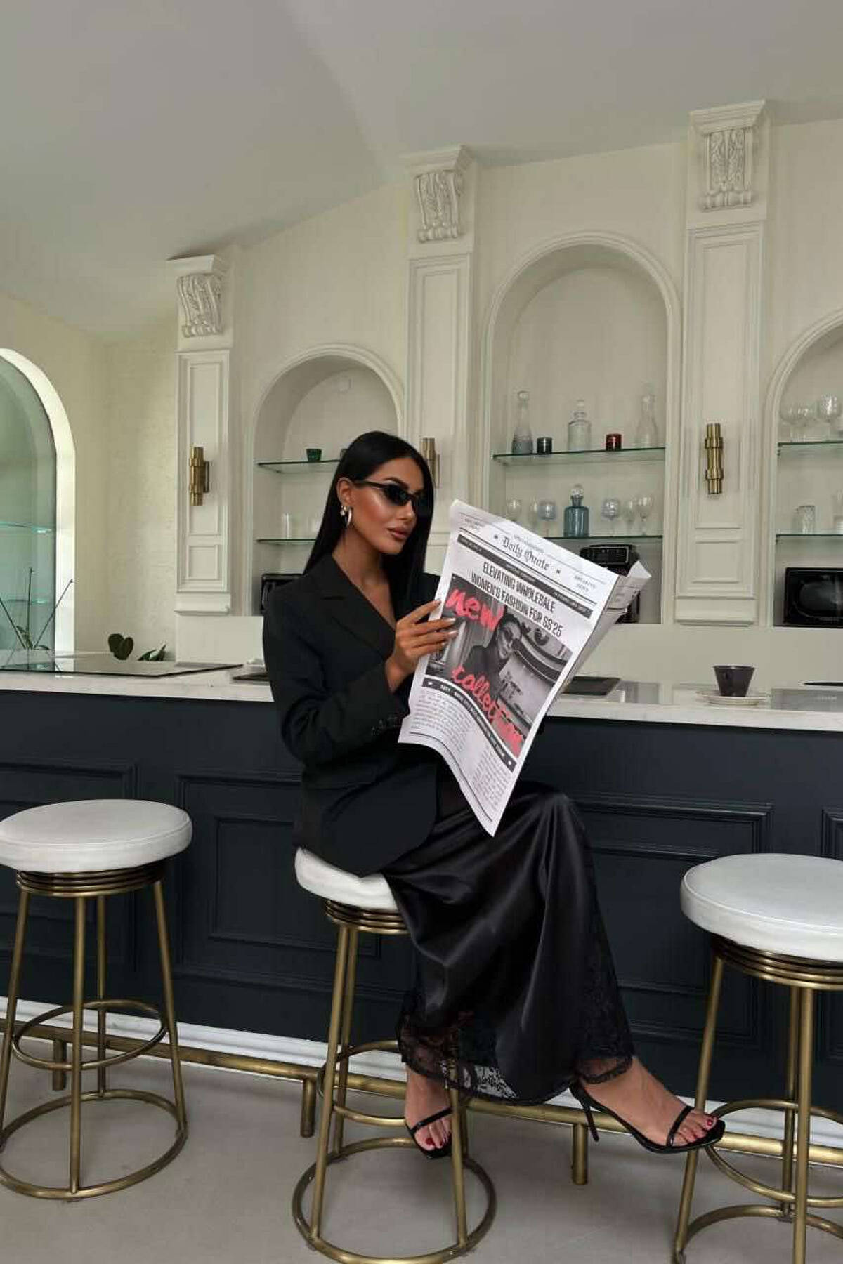 ONE COLOR LONG SATIN WOMEN SKIRT BLACK/ E ZEZE