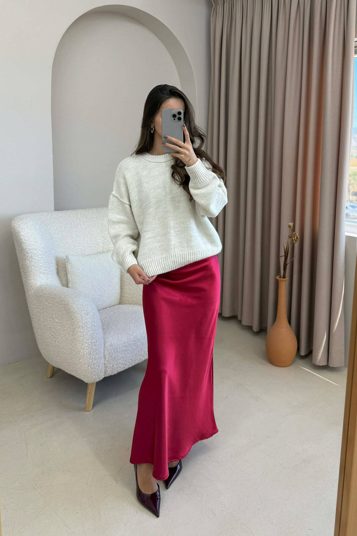 ONE COLOR LONG SATIN WOMEN SKIRT RED/E KUQE