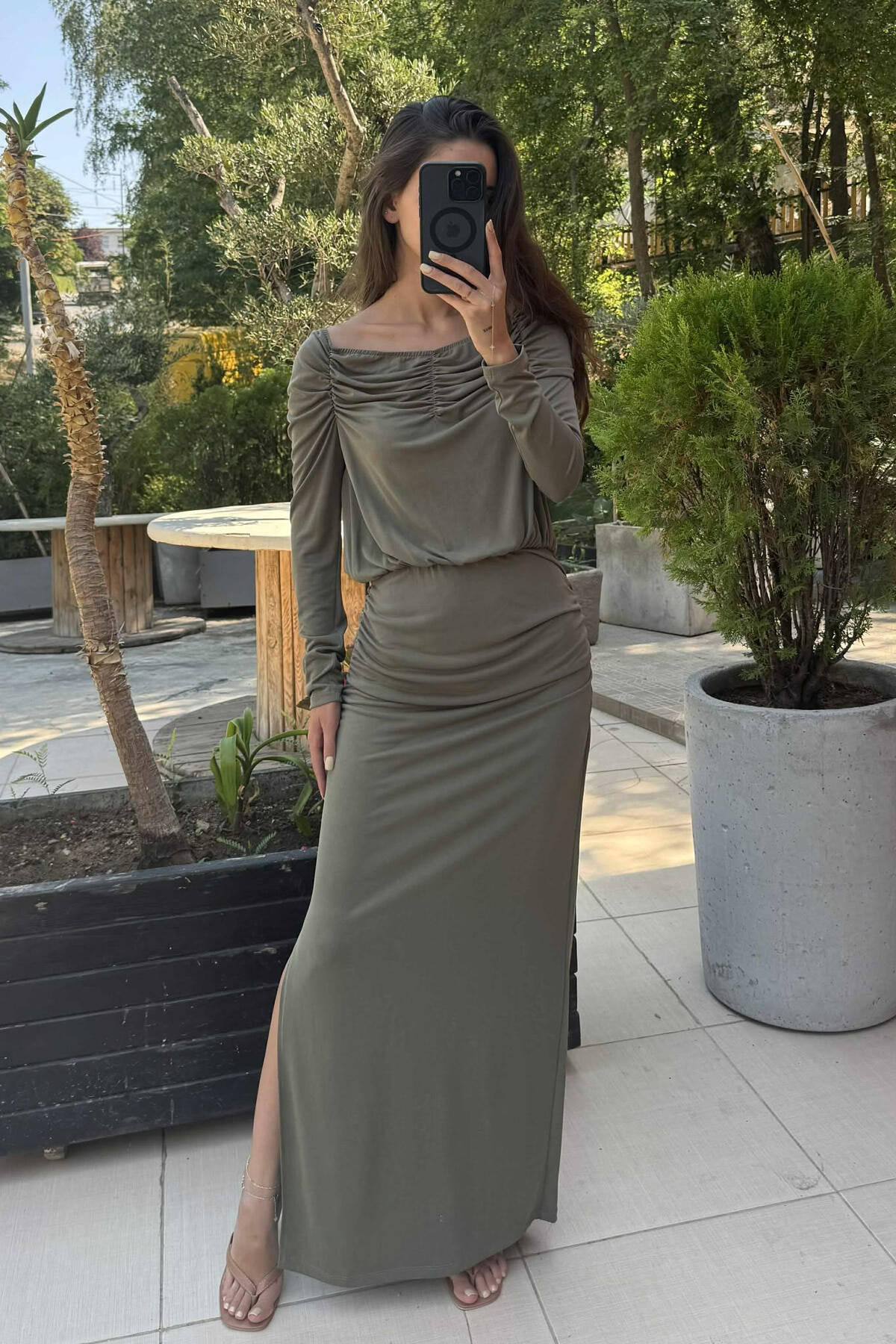 ONE COLOR LONG SIMPLE WOMEN DRESS GREEN/JESHILE